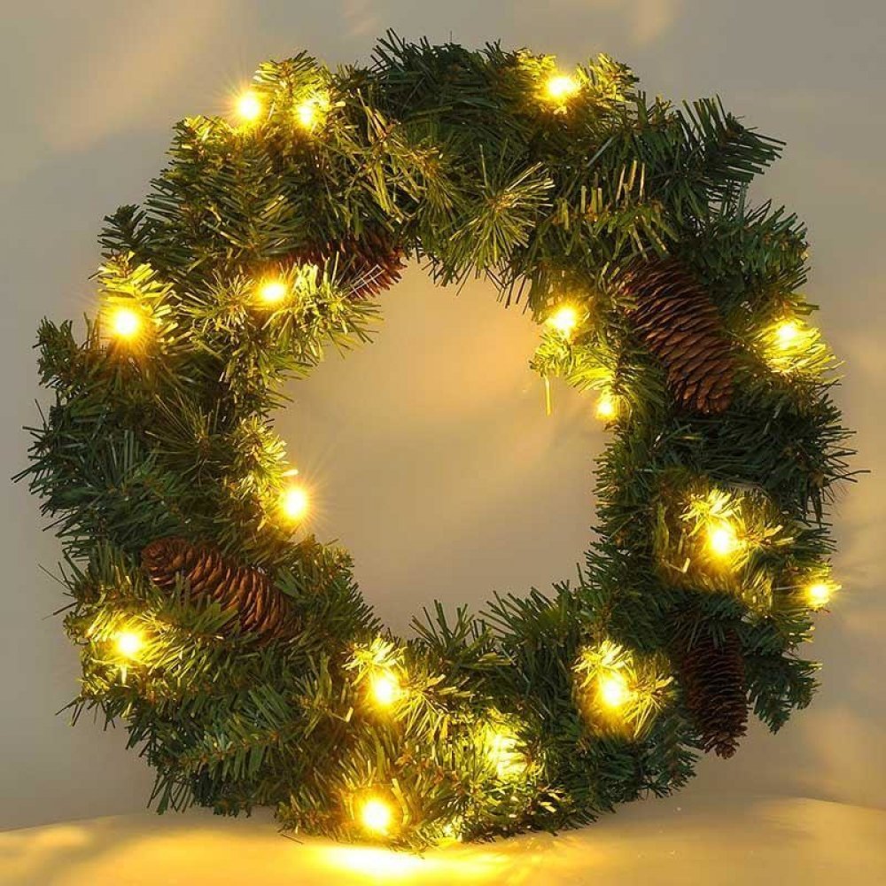 Vánoční věnec s LED řetězem má časovač, který šetří baterie. Věnec bude krásnou dekorací vašich vchodových dveří nebo i interiéru.