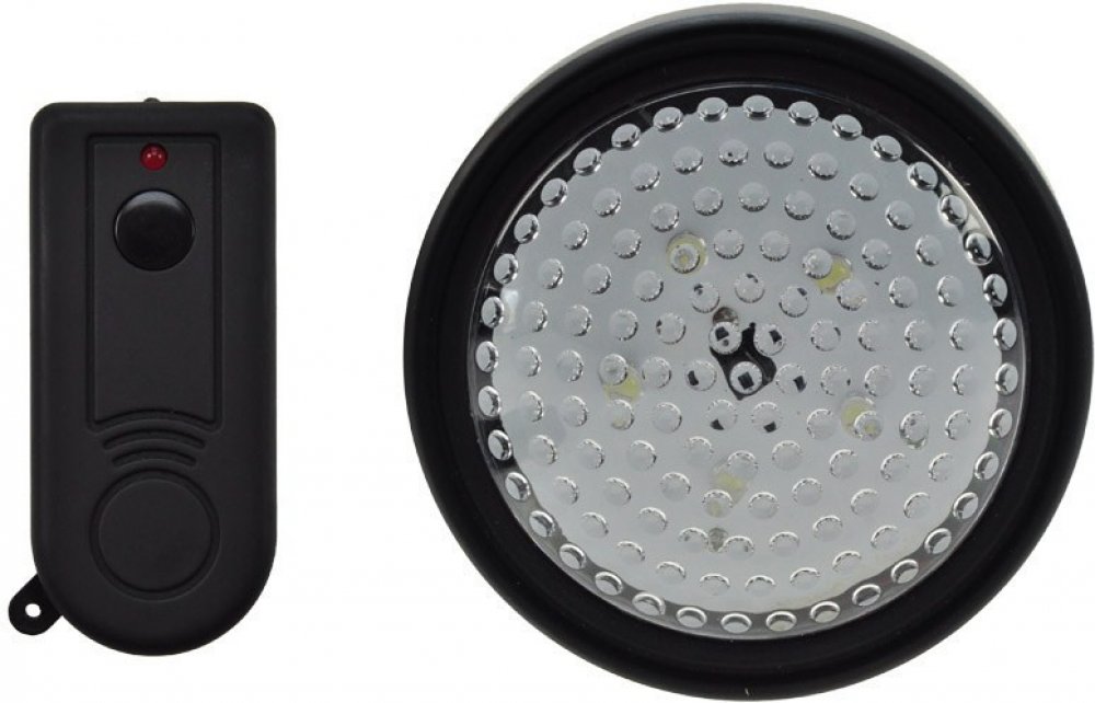 LED noční světlo na baterie Solight WL95 v černém provedení a výdrží až 36 hod. intenzivního svícení. Dálkový ovladač + manuální vypínač, bílá barva světla, napájení světel 3 x AA baterie (nejsou součástí), dálkový ovladač 1 x CR2032 (součástí balení).