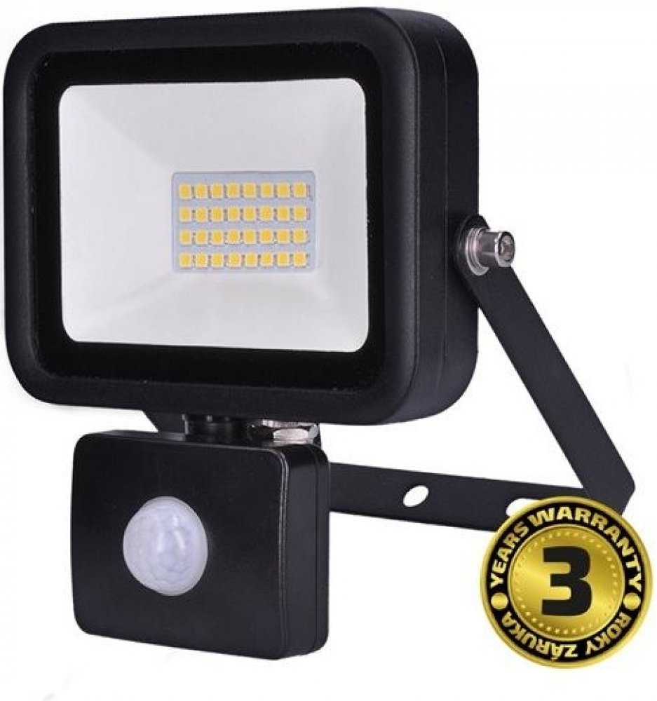 Vysoký výkon, spolehlivost a automatické ovládání – to vše nabízí LED reflektor se senzorem pohybu a světelným tokem 2760 lumenů. Díky studené bílé barvě světla (5000K) a úhlu svícení 120° zajišťuje maximální viditelnost i za šera či v noci. Reflektor je ideální pro osvětlení vstupů, parkovišť, skladových prostor či stavebních zón.