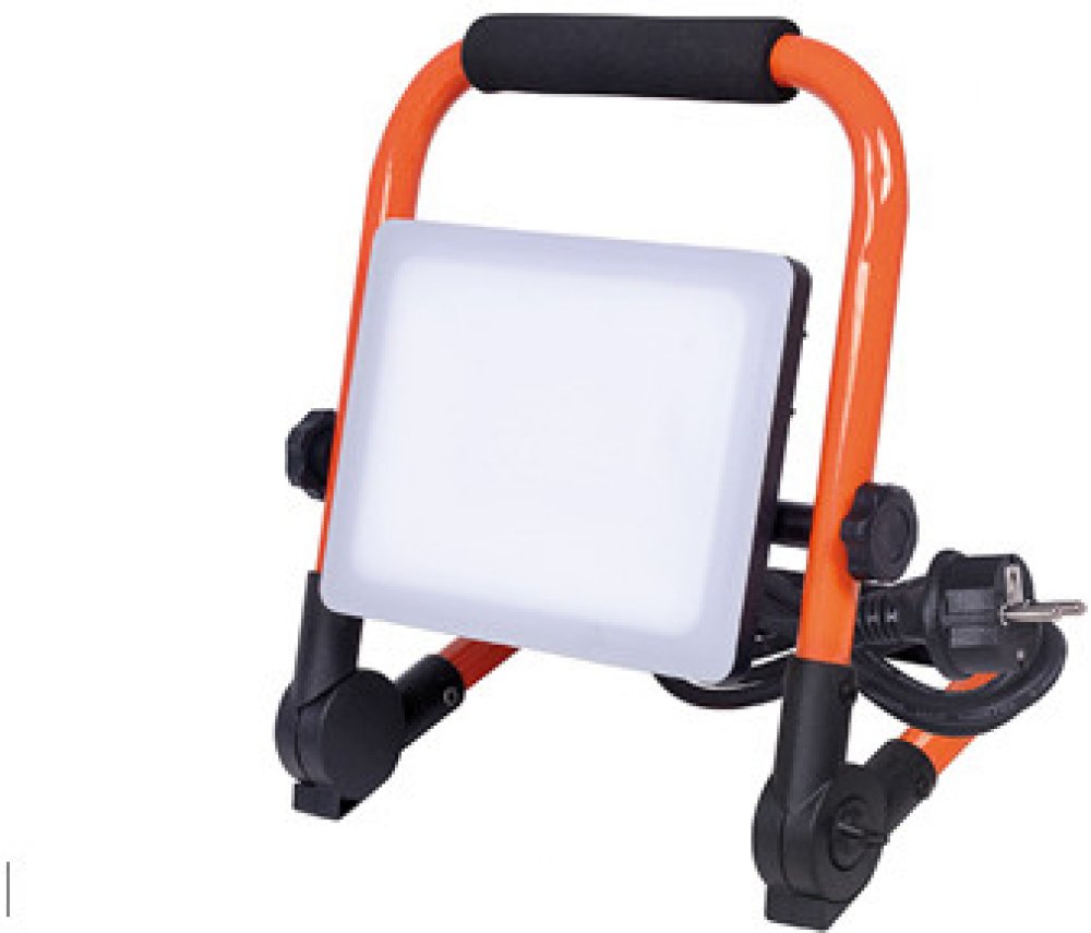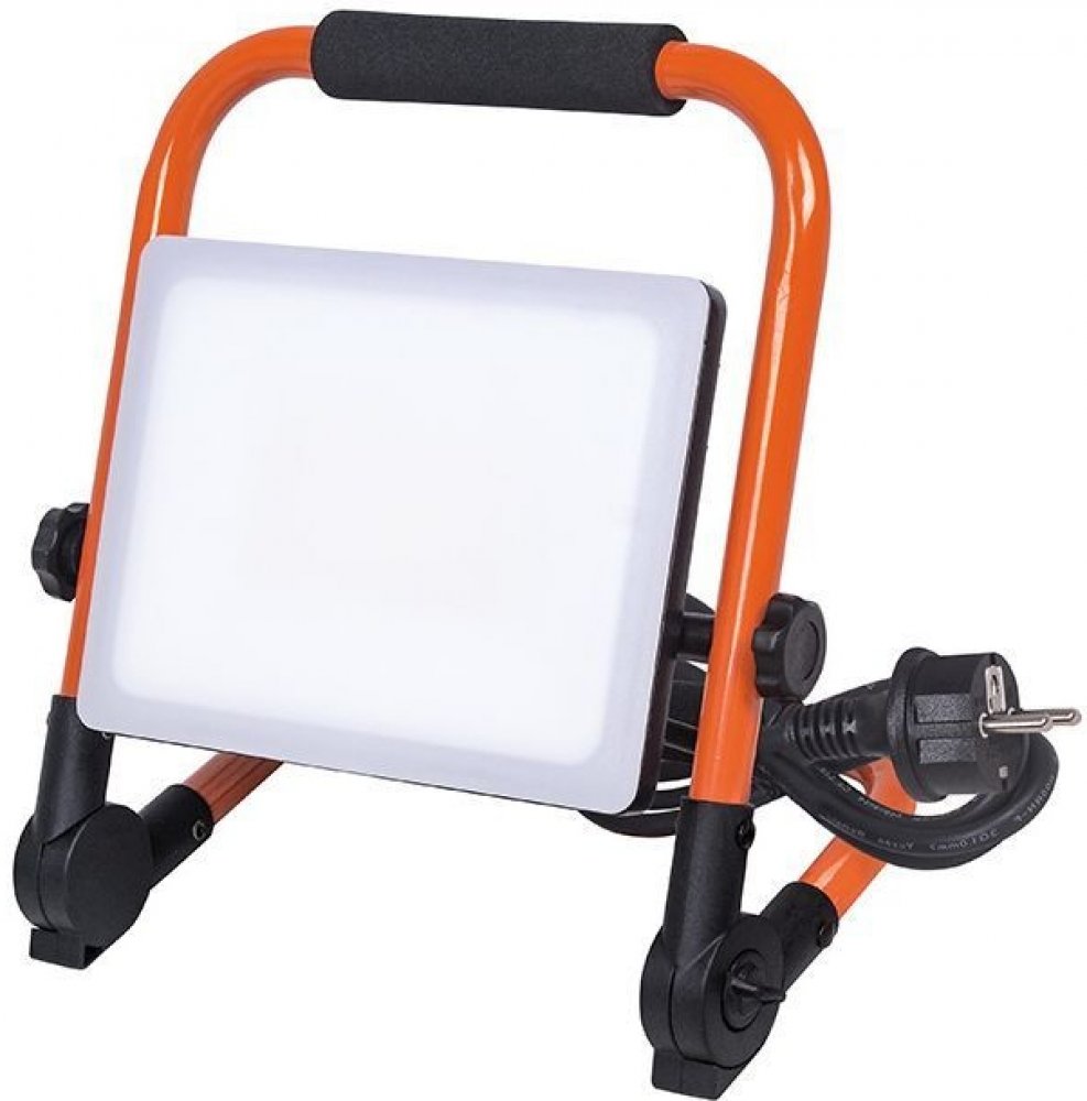 Přenosný LED reflektor s výkonem 50W představuje výkonnou a energeticky efektivní náhradu za současné zářivkové a halogenové reflektory. Díky praktickému polohovacímu stojanu s madlem můžete reflektor přemístit kam jen budete potřebovat. Na sklopném stojanu si můžete snadno a rychle nastavit potřebný úhel svitu. Proto je tento LED reflektor ideální pracovní světlo při zednických a dalších pracích, v dílně, na zahradě apod. LED reflektor s bezrámečkovým designem a mléčným difuzorem zajišťuje rovnoměrné osvětlení celého prostoru. Reflektor je vybaven vysokým stupněm krytí IP65, což zajišťuje bezpečné použití i v náročných venkovních podmínkách. Svítí ihned po zapnutí na plný výkon. Je osazen výkonnými SMD LED diodami a proto dosahuje vysoké svítivosti. Díky hliníkovému šasi se nepřehřívá. Tím je dána dlouhá životnost až 30 000 hodin. LED svítidla jsou vhodná k trvalému dennímu svícení maximálně 10 - 12 hodin denně. Delší provoz životnost a mohl by vést ke ztrátě záruky.
