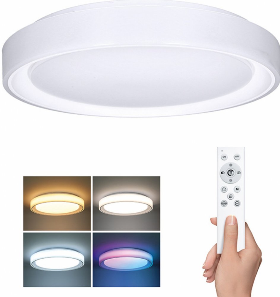 Floco je stmívatelné LED svítidlo s moderním designem, které navíc nabízí barevné RGB osvětlení pro vytvoření atmosféry dle vaší nálady. Pomocí dálkového ovladače snadno nastavíte teplotu světla (3000K–6500K), zvolíte z přednastavených módů svícení nebo upravíte intenzitu světla. Kombinovaný výkon 30W + 6W (RGB) a světelný tok až 2100 lm poskytují dostatečné osvětlení pro obývací prostory i ložnic...