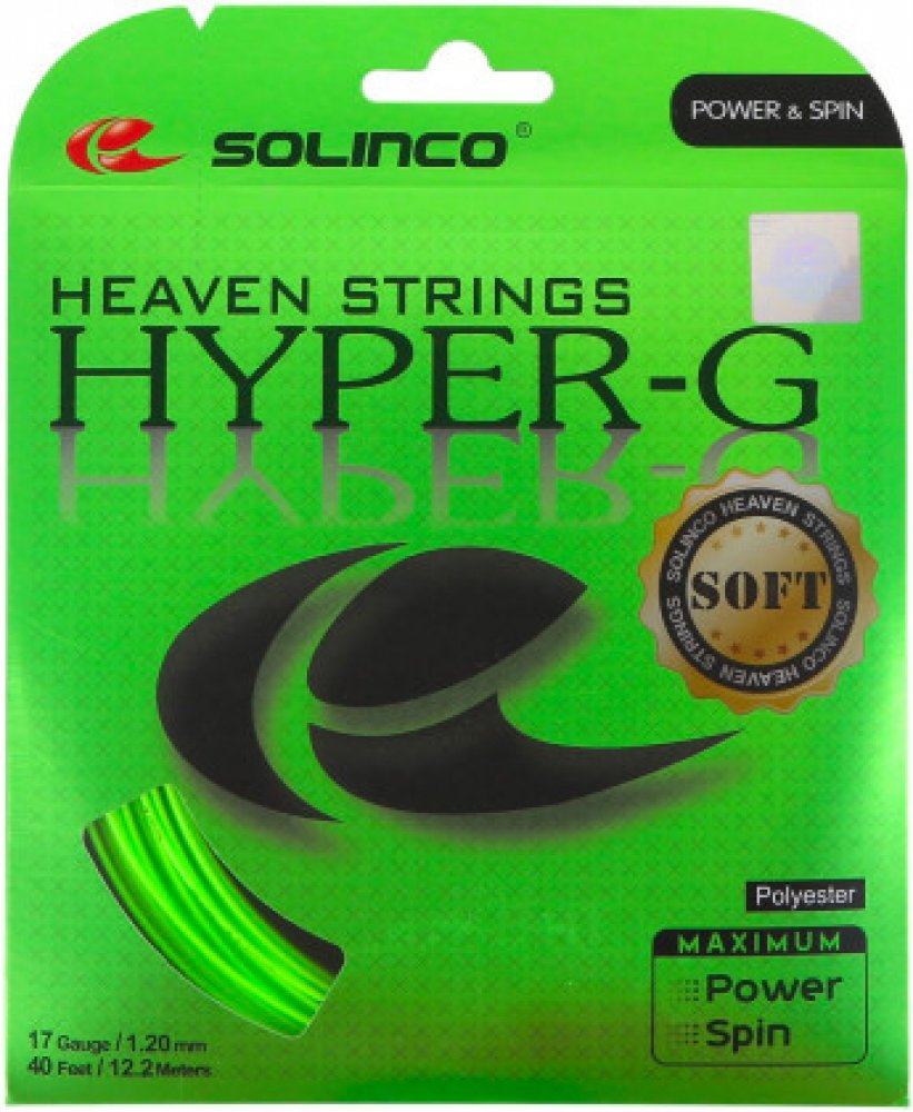 Solinco Hyper-G Soft (12 m) - zelená Nejnovější nabídka v segmentu výpletů v Tenisové zóně! Tenisové výplety renomované firmy Solinco v naší stále se rozšiřující nabídce! Vysoká kvalita provedení, velmi dobré parametry a péče o detaily způsobují, že výplety Solinco se těší velké oblibě. Tenisový výplet Solinco Hyper-G Soft. Je to nejměkčí verze uznávaného modelu Hyper-G. Nově navržený, měkčí výplet profesionální třídy, nabízí velmi dobrou hratelnost a kontrolu. Generuje velmi velkou sílu úderů a silné rotace.