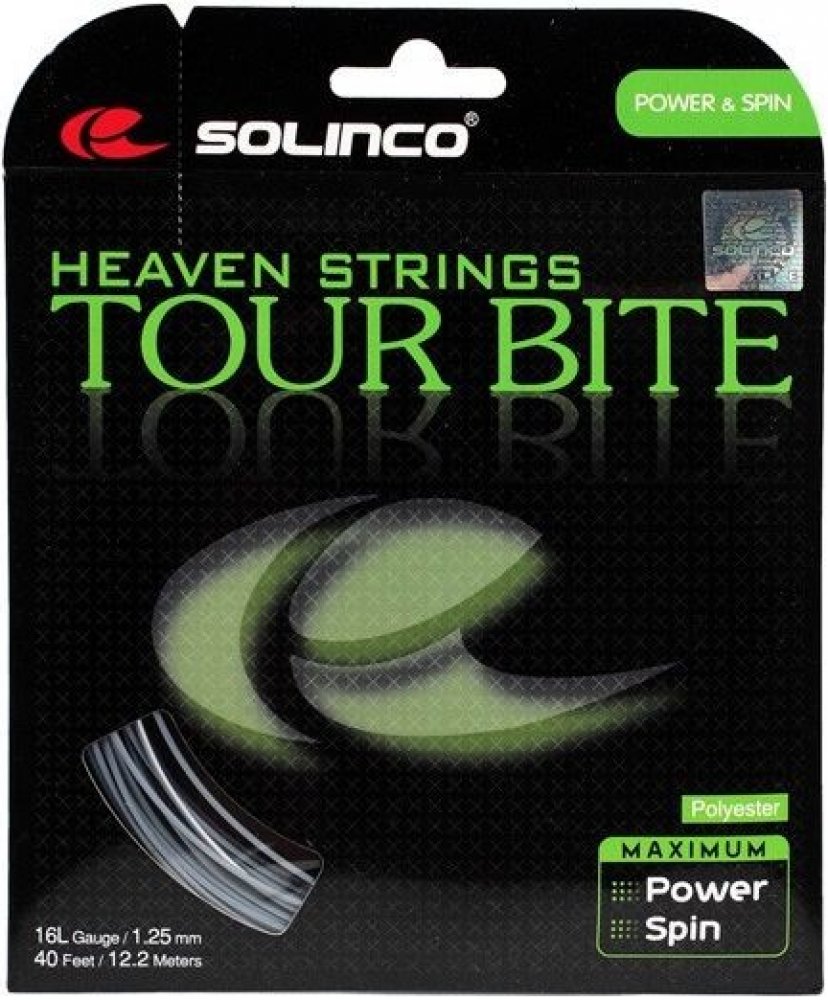 Solinco Tour Bite je čtvercový co-polyester pro ranaře. Tento výplet je malinko tužší, ale stále šetrný k vaší ruce. Velice oblíbený u mladých ambiciózních hráčů (a nejen u nich), kteří hledají kontrolu a extra topspin. Solinco Tour Bite doporučujeme vyplést o 1 až 2 kila méně, než jste obvykle zvyklí, a to pro maximální využití jeho vlastností.