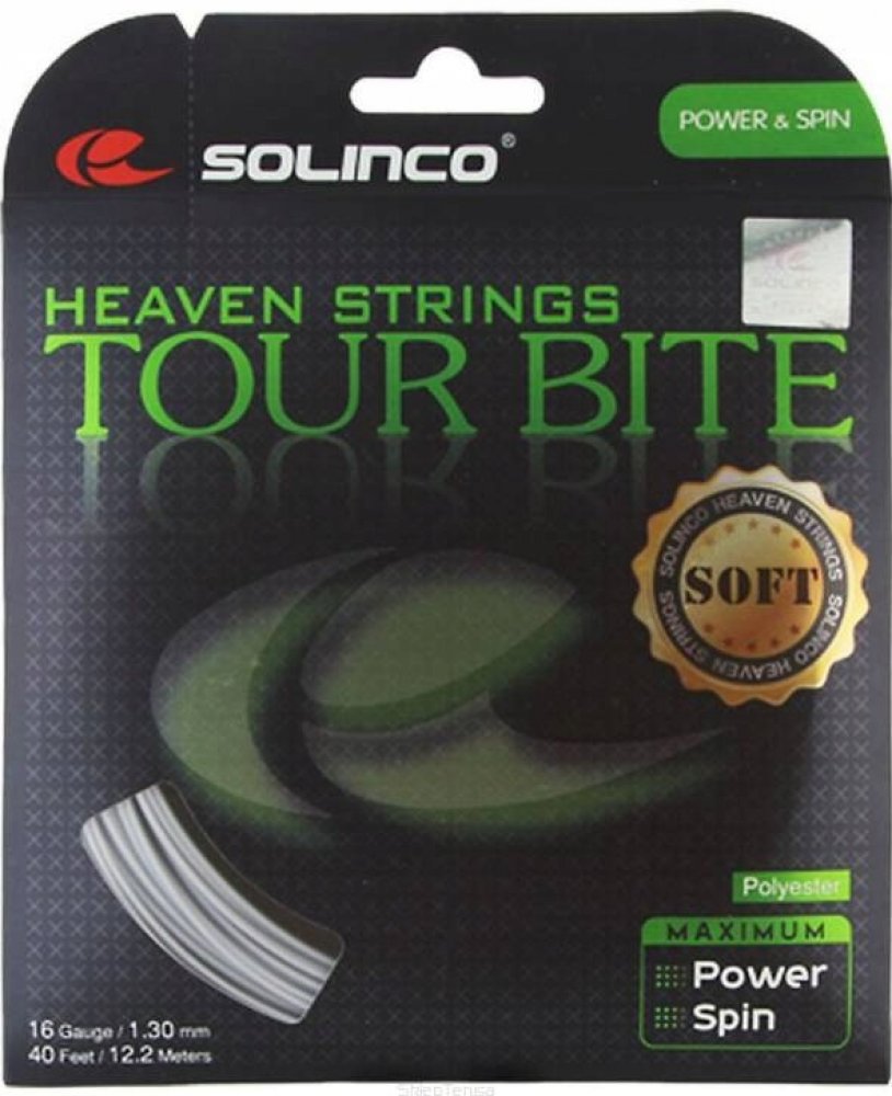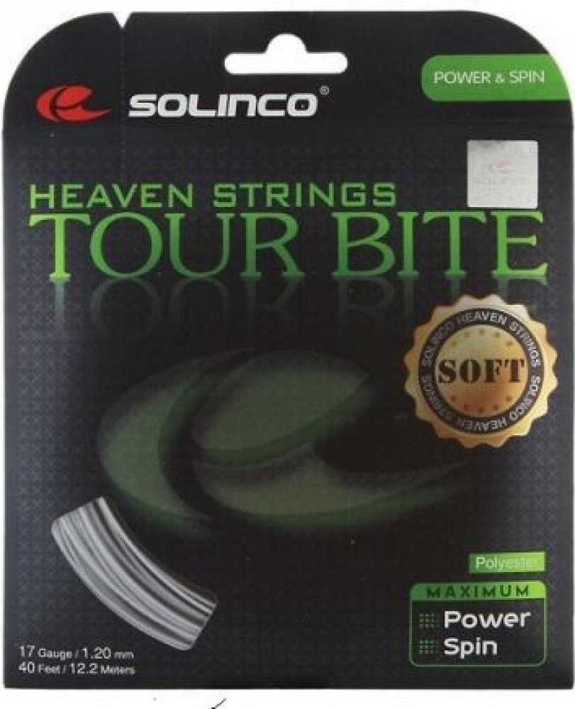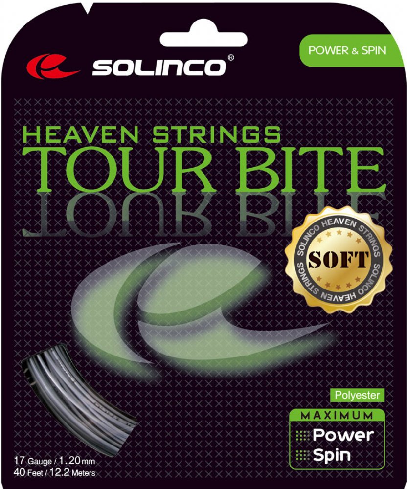 Solinco Tour Bite Soft je přesně to, co očekáváte od tenisového výpletu s tímto jménem. Tento měkký co-polyester poskytne vaší ruce vynikající komfort a maximální kontrolu nad údery. Solinco Tour Bite Soft je vhodný nejen pro závodní hráče, ale i pro hráče, kteří hrají tenis pro radost. Jako originální verze Tour Bite i tato verze Soft má čtvercový tvar pro maximální spin. Tour Bite Soft ocení hráči s agresivním pojetí hry, kteří chtějí maximálně šetřit svoji ruku.