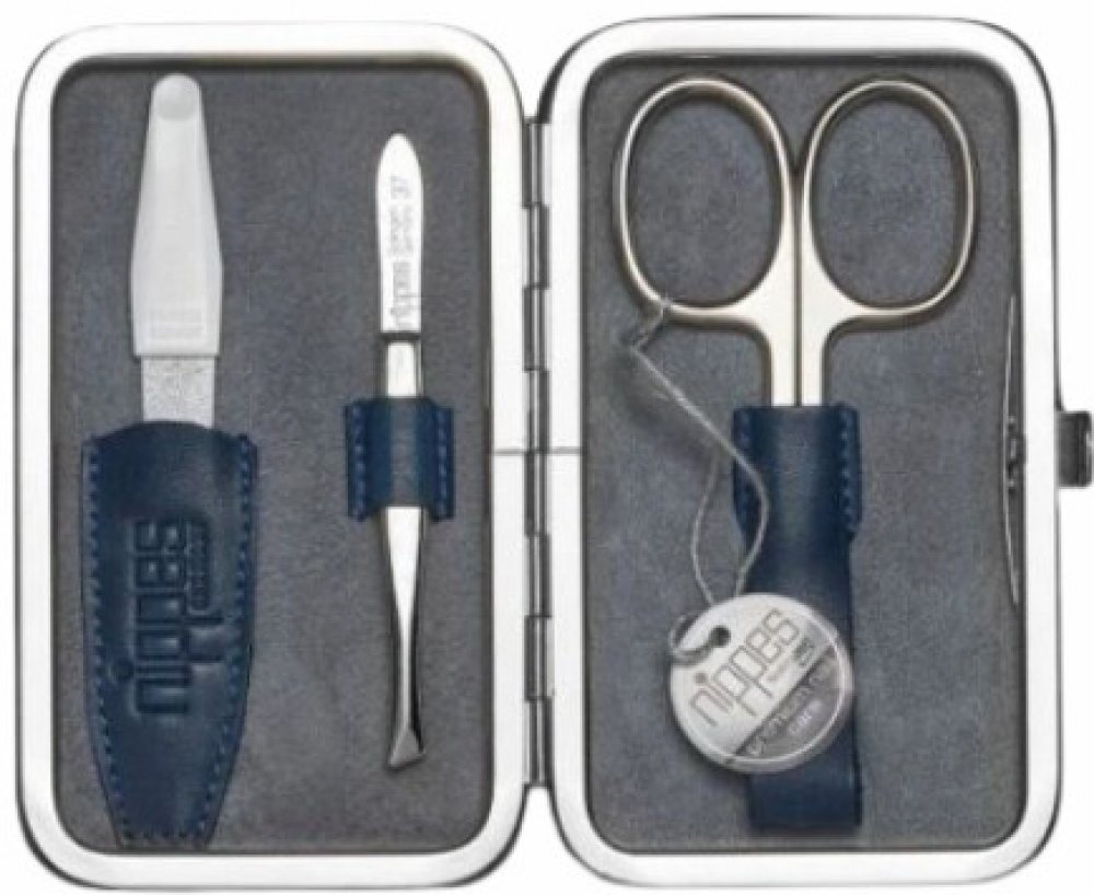 Sady na manikúru by neměly chybět v žádné domácnosti. Na cestách jsou cennými pomocníky v případě nehod, doma ideálním místem pro uložení vysoce kvalitních poniklovaných nástrojů.Série Vintage zaujme v mnoha ohledech, zvenku tmavě modrou starožitnou hovězí kůží a zevnitř kontrastním šedým a krásně měkkým semišem. Ten je zarámován do praktických a klasických rámů, které dodávají pouzdrům jejich sta...