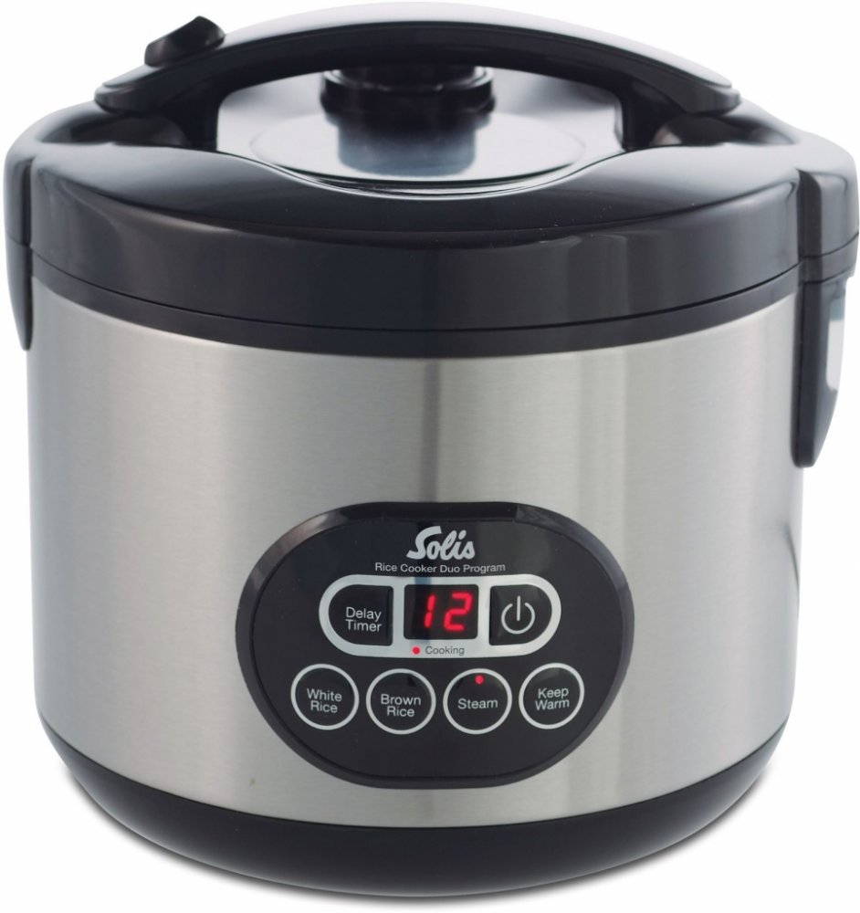 cerstva ryze kdykoliv behem dneSkvelou vychytavkou Solis Duo je moznost odlozeneho startu azna 15 hodin. Diky teto funkci muzete rano pripravit ryzi a vodu a nastavit, ze ryze bude hotova, jakmile dorazite vecer z prace. Navic se po dovareni vzdy automaticky zapne funkce keep warm, udrzujici pokrm teply azpo dobu 10 hodin.