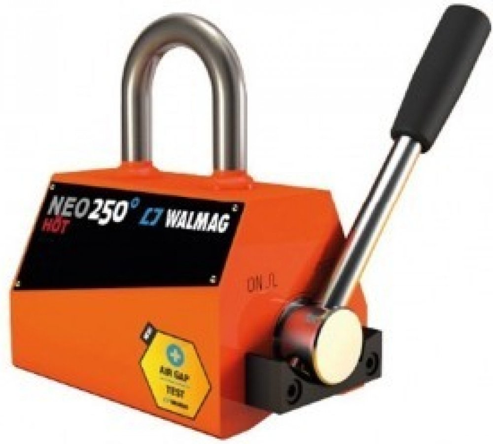 Značkový - český - zvedací magnet , i pro kruhové materiály - pro manipulaci s horkými materiály - výpalky, výkovky, nástroj, obrobky, plechy, profily, trubkami apod. Vyznačuje se vysokou odolností pro provoz ve ztížených podmínkách a umožňuje manipulaci pro břemena o teplotě až 180°C. Nosnost pro plochý materiál : 250kg Nosnost pro kruhový materiál : 125kg Min./Max. průměr kruhového materiálu : 6...