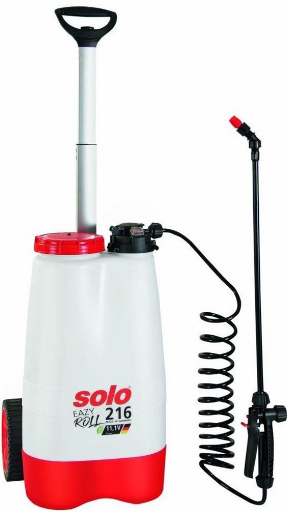 Aku postřikovač Solo 216 EAZY ROLL Praktické provedení a uživatelský komfort Kromě atraktivního vzhledu je velkou výhodou jednoduché ovládání a důraz na uživatelský komfort. Aplikovat lze všechny běžně dostupné kapalné přípravky na ochranu rostlin. Tiché a bezemisní řešení pro ochranu rostlin pro hobby a polo-profesionálním použití. Stisknutím jediného tlačítka je automaticky dosaženo stálého tlaku bez nutnosti jakéhokoli manuálního tlakování. Kompaktní design a snadná manipulace díky malé pracovní šířce stroje (pouze 35 cm). Velká 16 l nádrž se stabilní základnou. Snadno vyjímatelná baterie (výdrž cca 3 hod) s externím nabíjením (baterie i nabíječka jsou součástí balení). Široký a snadno přístupný nalévací otvor s vyjímatelným filtrem nečistot. Nízká hmotnost stroje pro pohodlnou práci. Provozní a konstrukční výhody Široká a odolná kola pro snadnou manipulaci a snadné překonání běžných venkovních nerovností. Ergonomické výsuvné držadlo. Výkonné čerpadlo se stálým pracovním tlakem 2.5 bar a jednoduchým spuštěním (tlačítko zapnout/vypnout). Spirálová hadice, výsuvné držadlo pro snadnou manipulaci vč. držáku pro bezpečné uchycení trubky postřiku a úsporu místa při skladování. Široký plnící otvor umožňuje bezpečné plnění a snadné čištění nádrže. Možnost využití široké škály příslušenství SOLO. Technické údaje: Objednací číslo 21601 Objem 16 l Pracovní tlak 2,5 bar (jeden stupeň) Baterie (napětí / kapacita) Li-Ion 11,1V / 2,5 Ah (baterie a nabíječka jsou součástí balení) Provozní doba baterie cca 170 min. na jedno nabití Doba nabíjení cca 120 min. Hadice spirálová, délka 2 m Trubka postřiku plastová, délka 50 cm Tryska nastavitelná kuželová tryska Vystříkané množství 0,6 – 1,6 l / min. Vystříkané množství až 110 l na jedno nabití Pojízdná kola plast, 7” (průměr cca 18 cm) Hmotnost 5 kg Rozsah dodávky: Aku Li-Ion 11,1V / 2,5 Ah - baterie a nabíječka jsou součástí balení