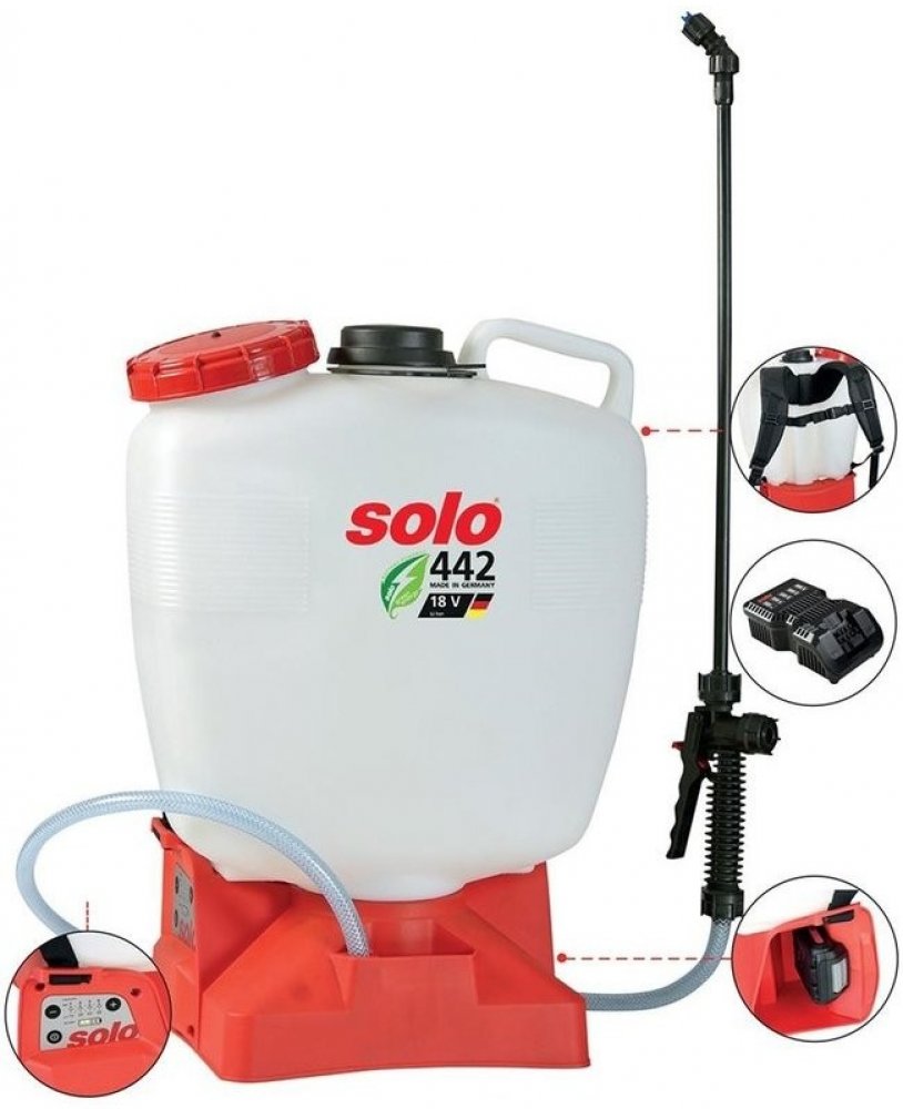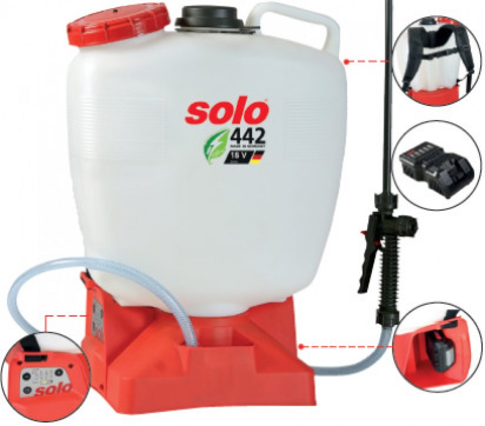 SOLO 442 Comfort - postřikovač pro profesionální ochranu rostlin a ochranu proti škůdcům představuje možnost pohodlné práce s využitím nejmodernějších akumulátorových technologií.