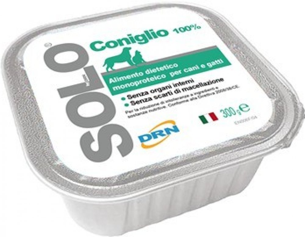 DRN Solo 300 g dospělí běžná králičí pro všechny eliminace vaničky Itálie 7.3 % 5.24 % 0.32 % 1.61 %