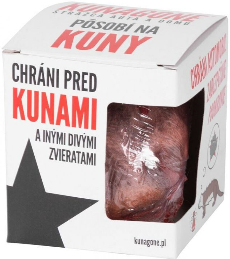 Kunagone je patentovaný výrobek, který ochrání elektrorozvody ve vašem automobilu před kunami. Výrobek uvolňuje přírodní zápach psů (přirozených nepřátel), který zastrašuje nejen kuny, ale i ostatní divoká zvířata. Může být použit také na půdy a místa kde je výskyt těchto škůdců nežádoucí.