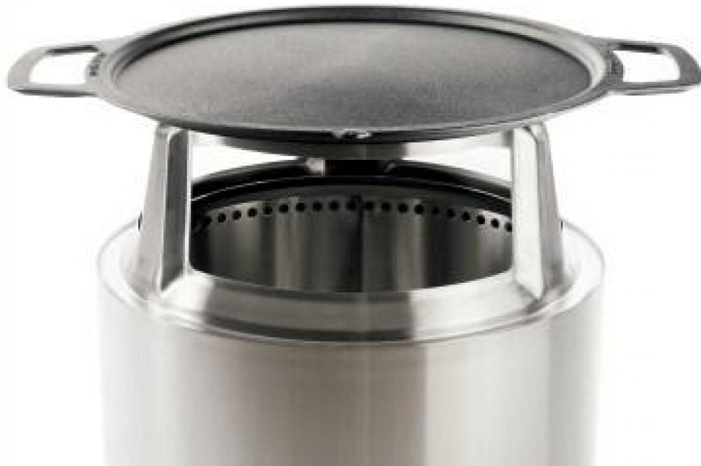 Grilování na otevřeném ohni, na cestách. Litinová pánev vyrobena na míru pro varný systém Bonfire a spojená s hubem. Rovnoměrný ohřev pro dokonale propečené steaky a zeleninu.