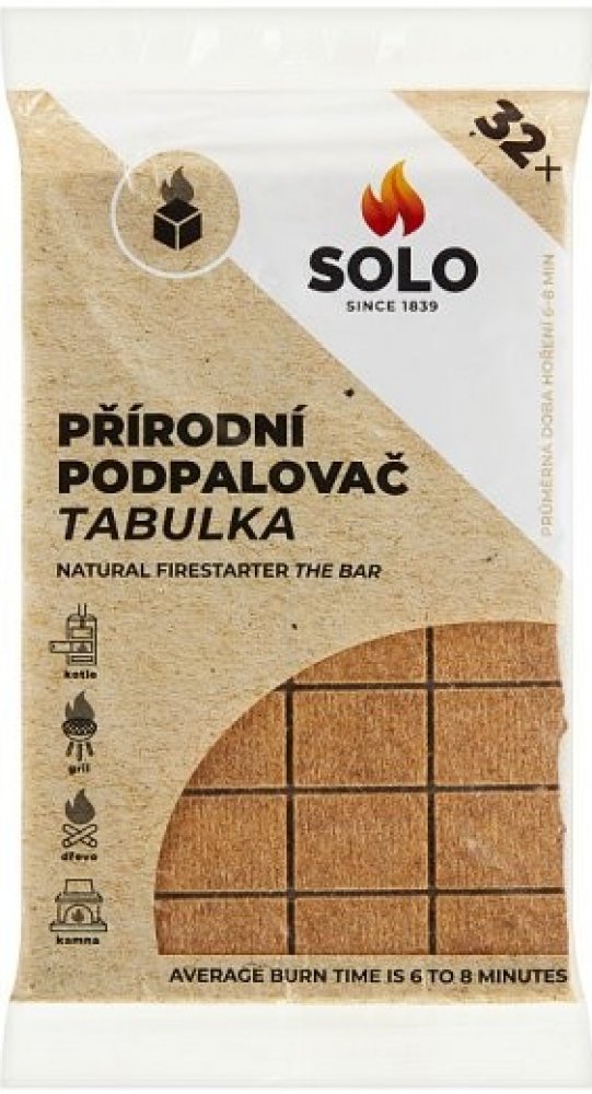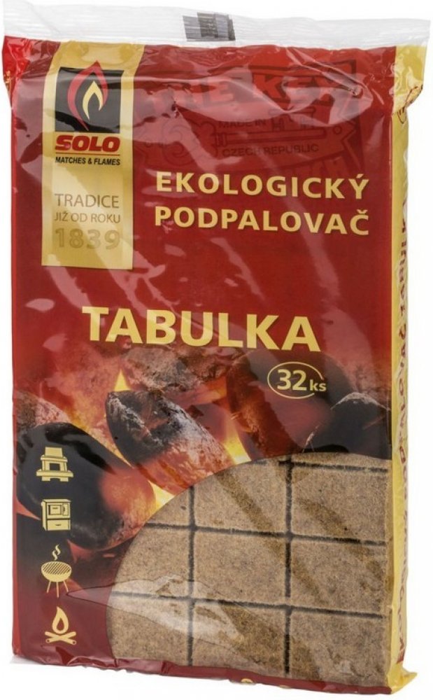 Solo přírodní podpalovač tabulka, 32 podpalů je praktický pomocník pro snadné a spolehlivé zapálení paliva v krbu, kamnech i na grilu. Balení obsahuje 32 kusů, které poskytují stabilní hoření přibližně 6–8 minut – ideální do fáze rozhořívání menšího množství dřeva nebo uhlí.