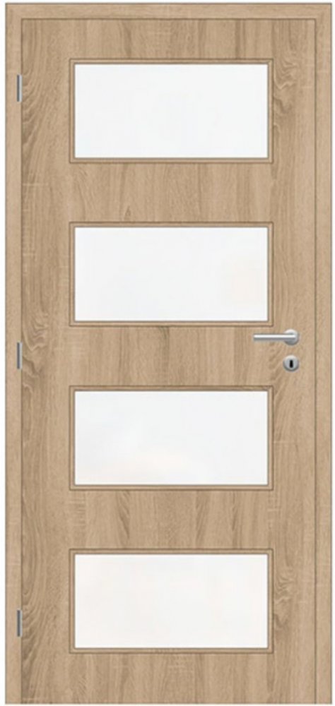 Kvalitní interiérové dveře tradičního českého výrobce SOLODOOR, který patří k předním výrobcům v ČR již od roku 1997. Dveře v moderním a odolném povrchu v dekoru věrně imitující dřevo. Dveře jsou vyrobené z kvalitního a pevného smrkového rámu, s odolnou voštinovou stabilní výplní. Součástí dveří je i vložkový zámek (BB dózický - pokojový klíč) a 3 pozinkované stříbrné panty. Hrana dveří je oblá. Oblé hrany dodávají dveřím nejen na eleganci, ale také na bezpečnosti a praktičnosti. Přispívají k lepší údržbě a prodlužují životnost dveří. Dveře se tak stanou unikátním designovým kouskem vašeho interiéru.Při pádu na hranu dveří nebo při jiném kontaktu s dveřmi snižuje oblá hrana riziko úrazu, ocení je proto například rodiny s malými dětmi. Oblé hrany také zabraňují průniku vzdušné vlhkosti do dveřního křídla a dveře vám tak vydrží dlouhá léta. V případě potřeby je možné všechny typy interiérových dveří zkrátit na výšku o maximálně 2 cm zaříznutím spodní strany dveří, pokud neobsahují vysouvací práh.
