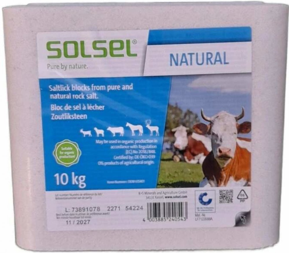 Solný liz Solsel Normal pro koně, dobytek, ovce, kozy a zvěř - schváleno pro využití v ekologickém zemědělství. Liz z čisté vakuové soli, pro ideální a jednoduchý způsob, jak doplnit krmení hovězího dobytka, ovcí, koz, koní, srn a vysoké zvěře o soli a přírodní minerální látky.