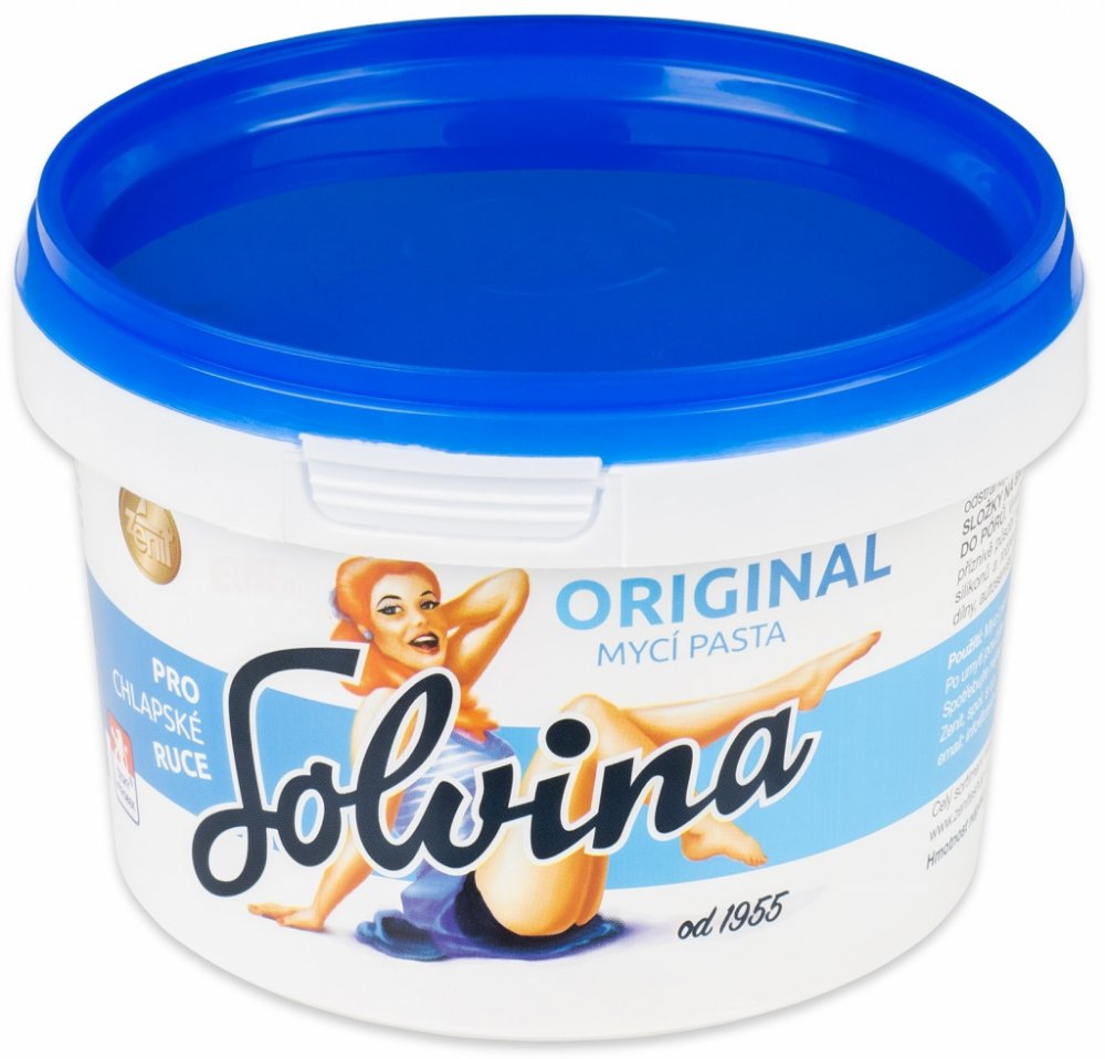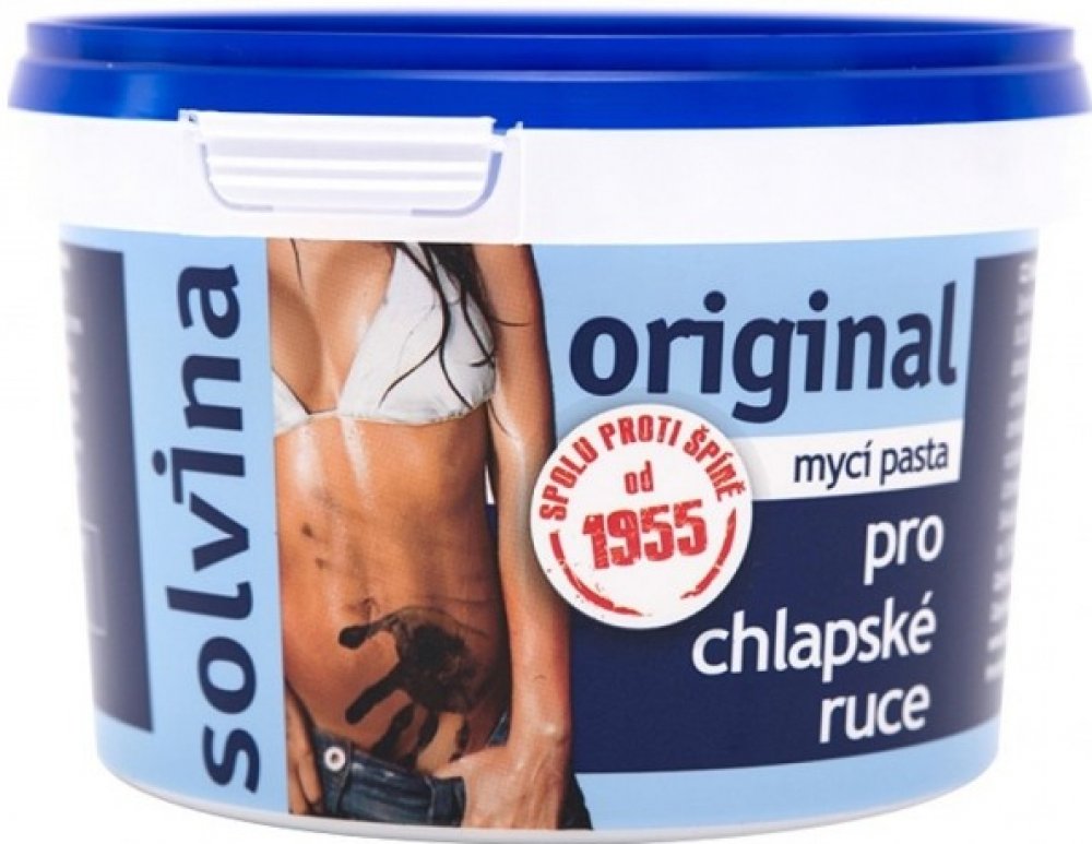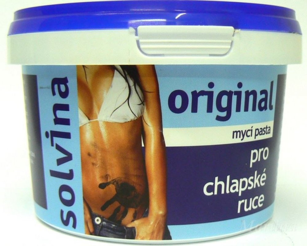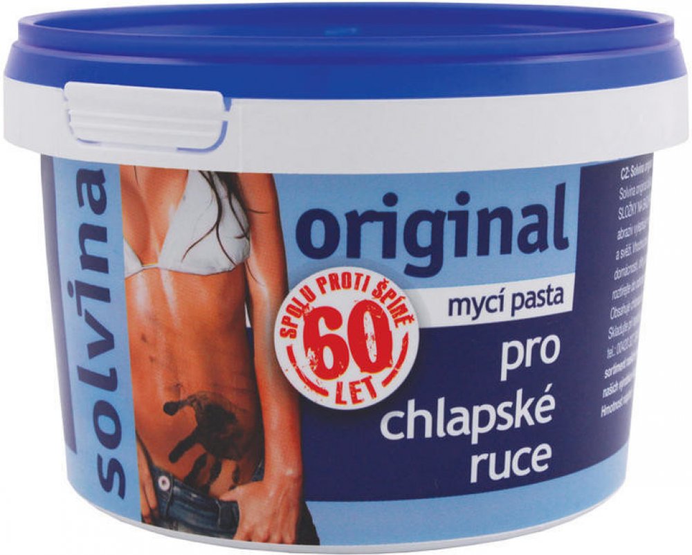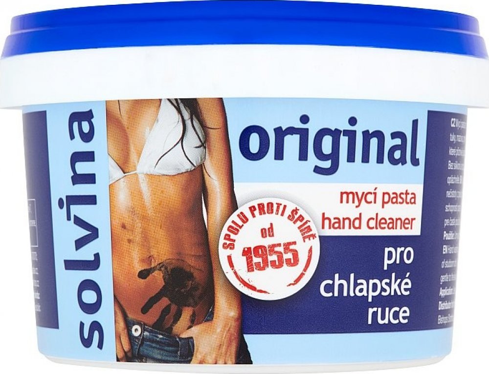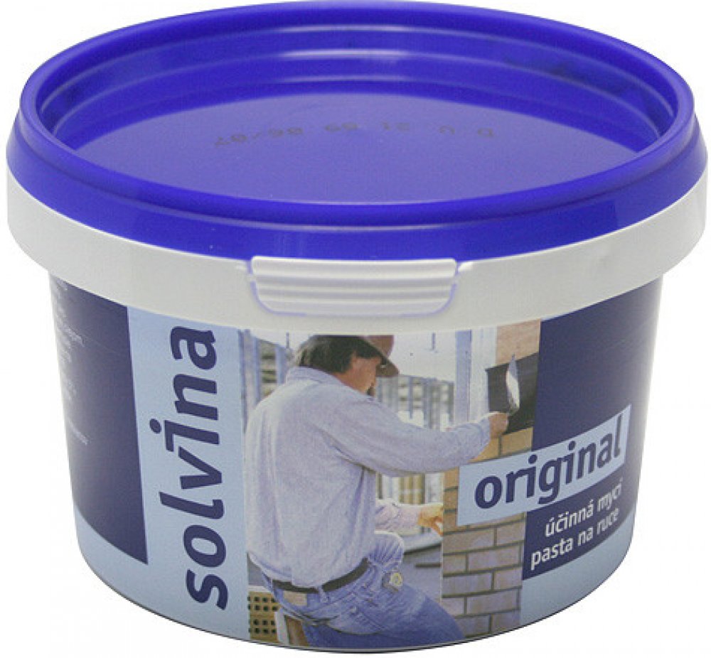 Mycí pasta Solvina ORIGINAL Oblasti použití: domácnosti, dílny, autoservisy, stavebnictví, zemědělství, těžký průmysl a mnoho dalších.Způsob použití: Malý kousek přípravku rozetřete v dlani s vodou a dále se myjte jako tekutým mýdlem. V př ...