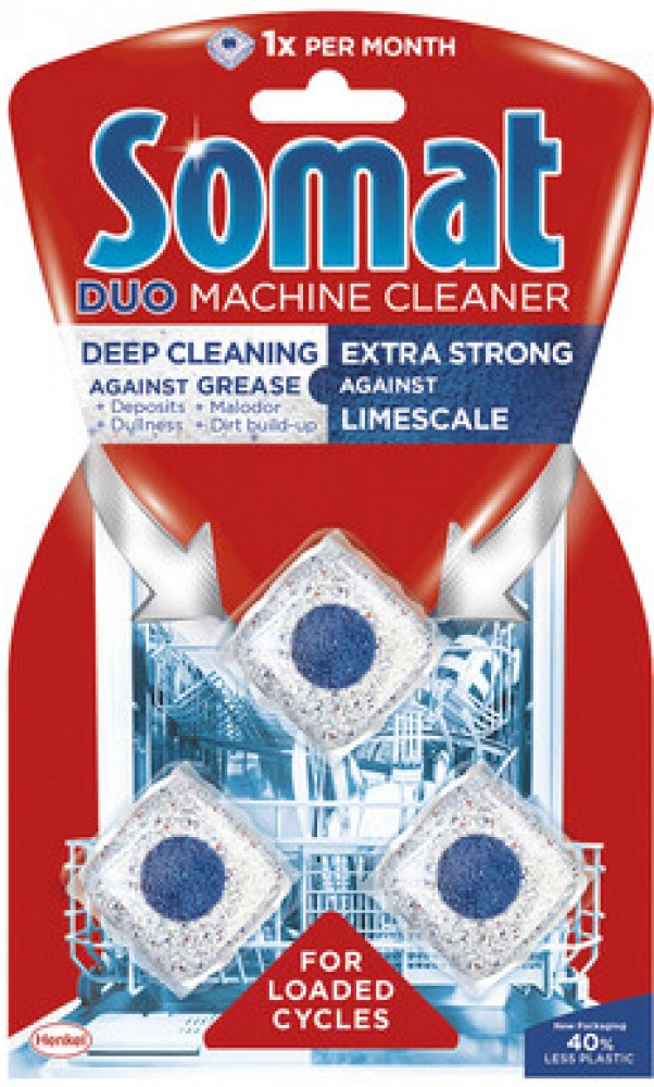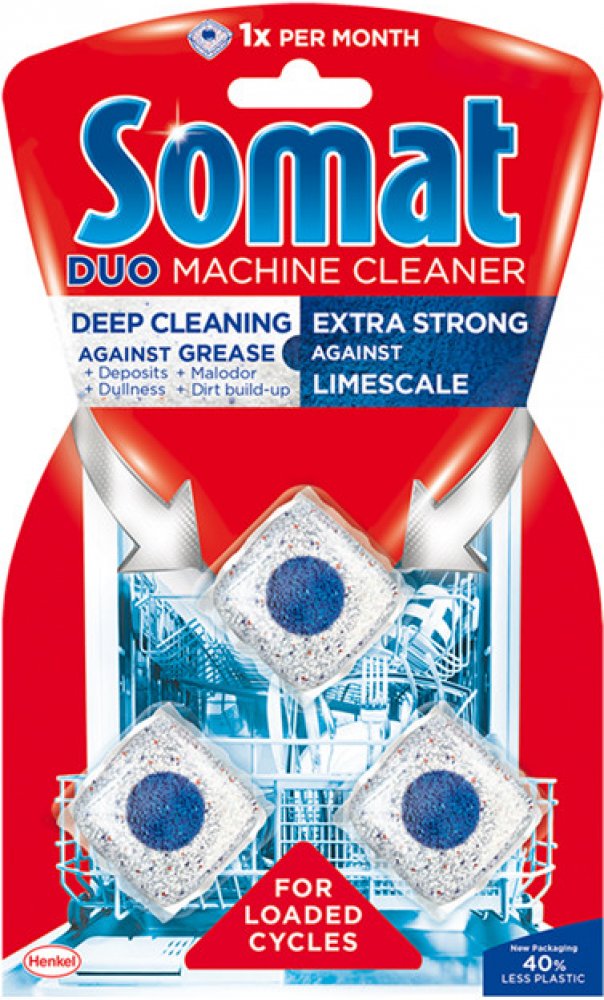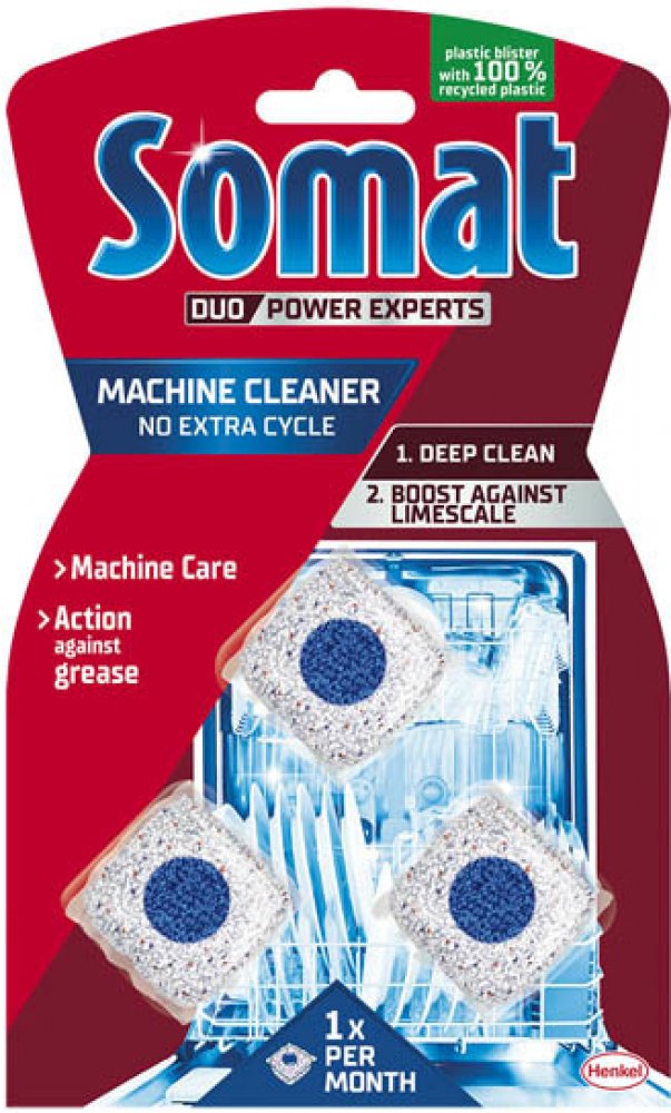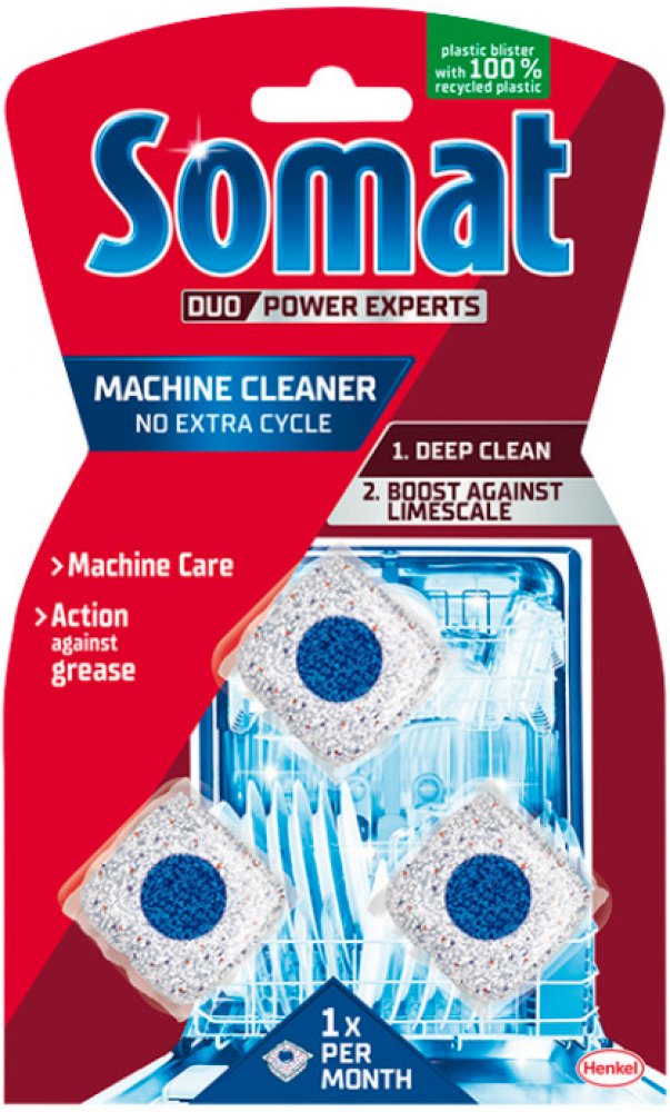 Somat čistič myčky nádobí je unikátní svým použitím, lze jej aplikovat i současně s pracím programem, stačí jej položit na dno myčky, působí až do hloubky a poradí si se všemi nečistotami ve filtru myčky a na jejích tryskách jako jsou například vodní kámen a mastnota, čistič myčky nádobí lze používat se všemi druhy nádobí aplikovatelnými do myčky