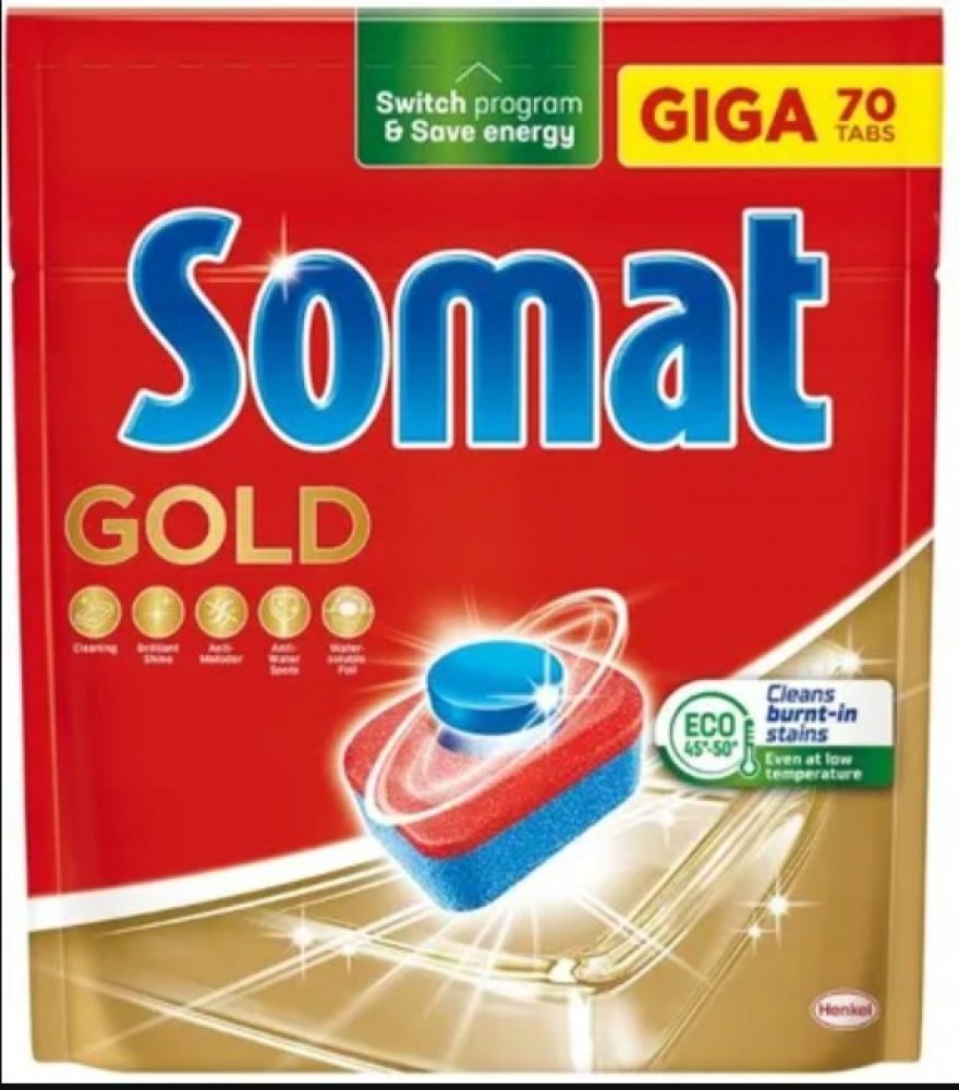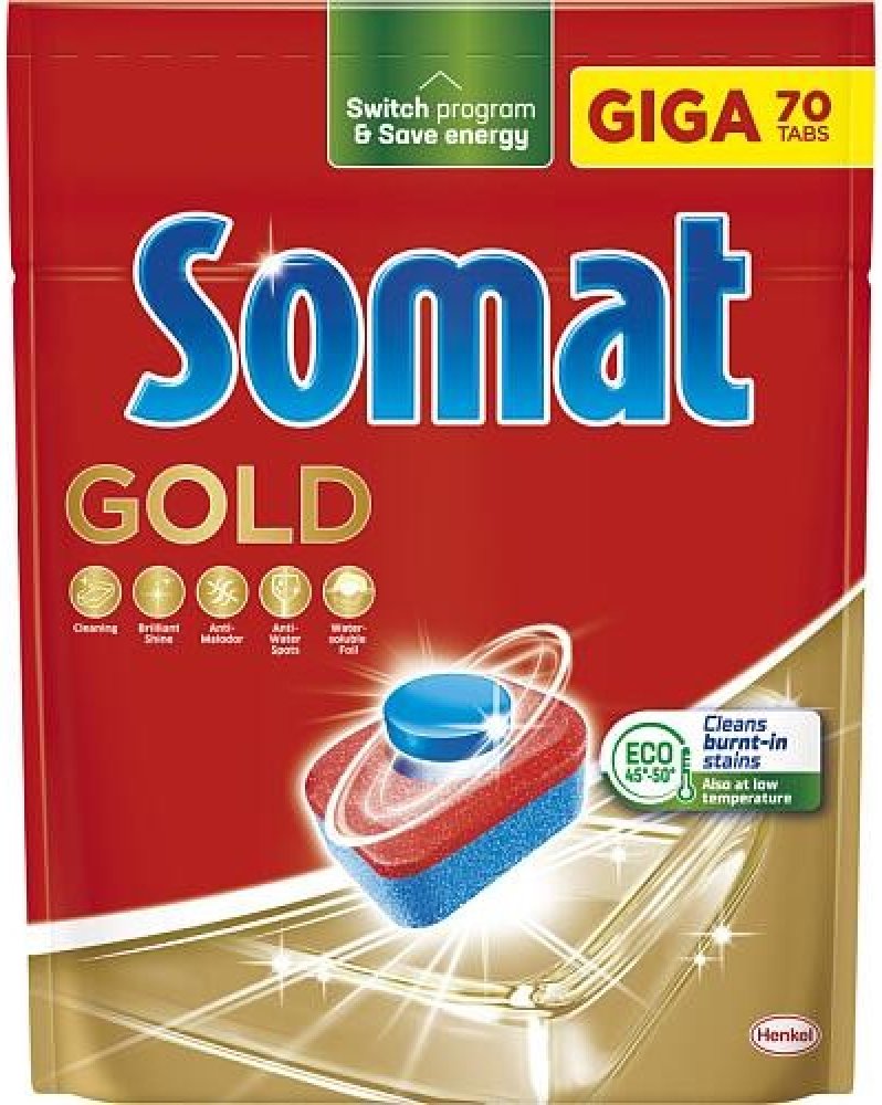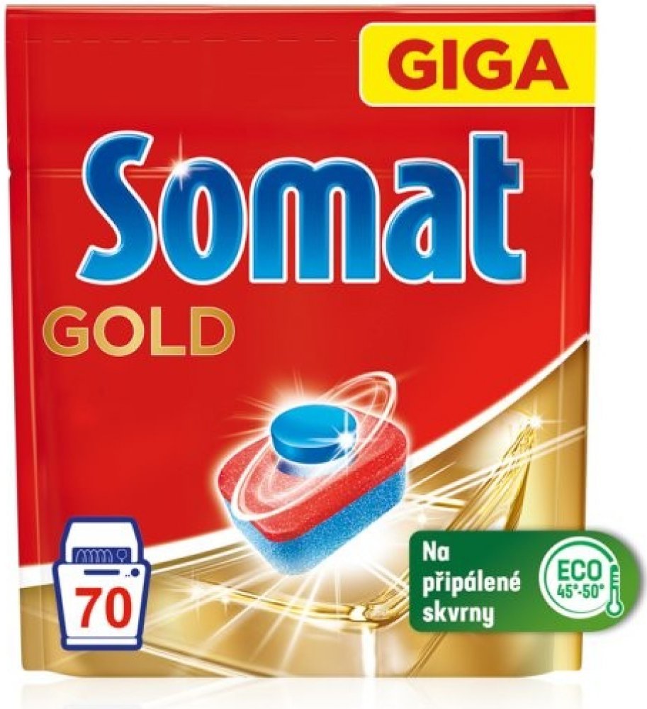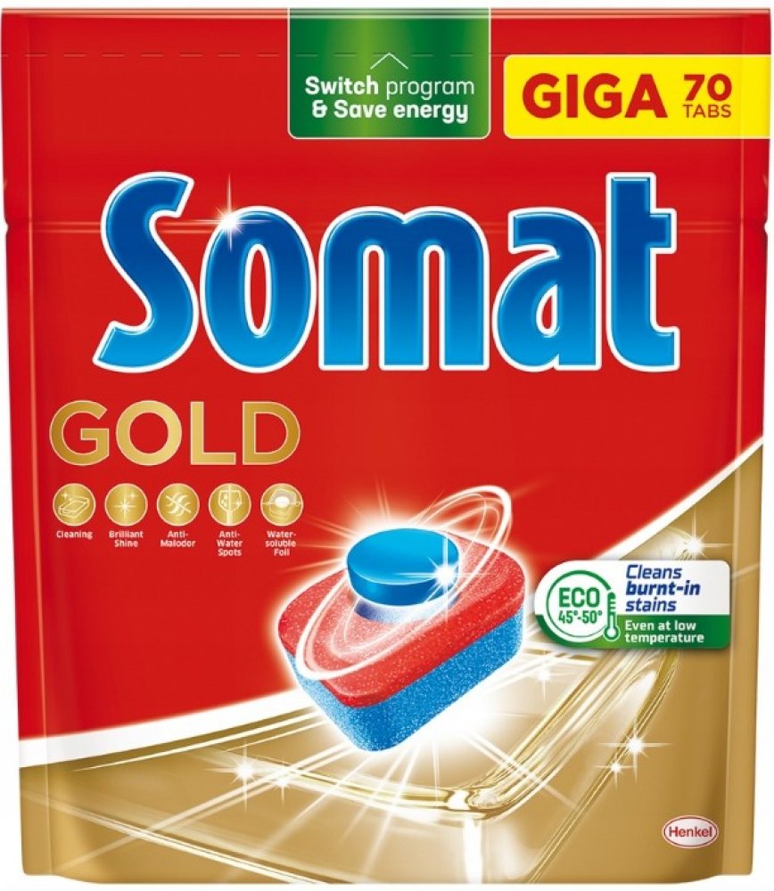 S tabletami do myčky Somat už žádné dávkování, předmáčení ani péče po mytí! Zažijte silnou a účinnou čisticí sílu s tabletami do myčky Somat Gold. Jejich efektivní a rychle působící složení si poradí i s těmi nejodolnějšími zbytky jídla, jako jsou usazená mastnota, připálené jídlo nebo skvrny od čaje a kávy. Složení se rychle rozpouští a působí okamžitě, aby nádobí a sklenice byly zářivě čisté po ...