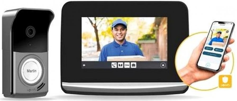 designový videotelefon s integrovaným 5ti kanálovým vysílačem io k ovládání až 5ti výrobků nebo skupin výrobků, zároveň umožňuje ovládání brány a elektrického zámku brány, noční vidění, 7palcový dotykový displej s intuitivním ovládáním a detekcí pohybu, možnost připojení druhého monitoru s funkcí interkomu, identifikace návštěvníka i při nepřítomnosti, nahlédnutí do historie návštěv s uchovanými fotografiemi, 5 přednastavených vyzváněcích melodií či možnost nahrání vlastní melodie, Snadná instalace.