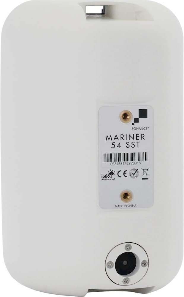 Sonance Mariner 54 SS je univerzální menší reprosoustava pro venkovní použití. Využívá konstrukce single stereo. To umožní připojení levého i pravého výstupu zesilovače a reproduktor se chová jako stereo. Je osazena 165 mm wooferem s polypropylenovou membránou a výškovým 25 mm měničem, s hedvábným vrchlíkem. Impedance neklesá pod 6 Ohmů. Vyznačují se také vysokou citlivostí 89 dB. Reprosoustavy Mariner splňují ochranu IP66, jsou odolné proti UV zážení a vysoké teplotě. Je možné je instalovat v prostředí s teplotním rozsahem -25 až 65 stupňů Celsia . Materiály a technologie z oceňované řady Visual Performance Mariner mají certifikaciIP66 umožňující použití tohoto reproduktoru v těch nejnáročnějších venkovních prostředí Provozní teplota prostředí -25ºC - 65ºC Odpovídá Mil Spec 810 - odolnost vůči vlhkosti, soli, vysokým teplotám a UV záření Vodotěsnost měničů zajištěna, což zaručuje bezporuchový výkon Inovativní konektory kabelových svorek namontovaných na přední straně jsou chráněny proti korozi Přesná montážní konzola FastMount ® zjednodušuje instalaci, poskytuje až 180 stupňů otočení a bezpečně uzamkne reproduktor na svém místě Mřížka byla navržena pro snadnou instalaci