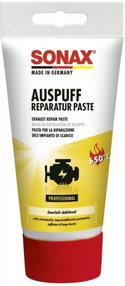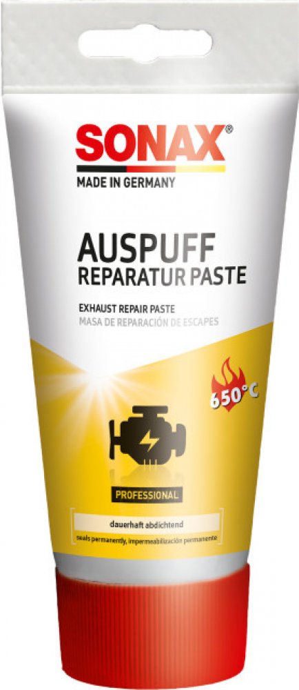 Opravná pasta na výfuky Sonax utěsní malé praskliny, díry a netěsnosti ve výfukovém systému trvale, rychle a zcela plynotěsně. Pozor, nutno aplikovat na zcela čistý a odmaštěný povrch, část pasty musí být vtlačena do spáry, nebo otvoru, aby fungovala jako nýt.Balení - tuba 200 gSONAXHistorie jednoho z největších výrobců autokosmetiky na světě, firmy SONAX, sahá až do počátků minulého století. V roce 1905 dobýval pradědeček současných vlastníků kysličník křemičitý, velmi jemný minerál, který pak používal v mnoha leštících prostředcích pro domácnost. V dalších letech probíhal vývoj nových přípravků pod názvem SONA. Netrvalo dlouho a došlo i na leštěnky pro automobily.V té době se u označení SONA objevilo ještě X, ja