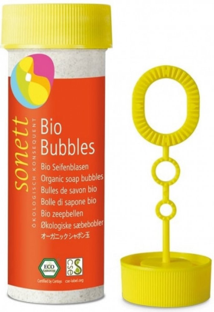 Sonett organické mýdlové bubliny - BUBLIFUK je určený pro vaši venkovní zábavu. Má tři velikosti kroužků a je testován v souladu s bezpečnostními normami CE.