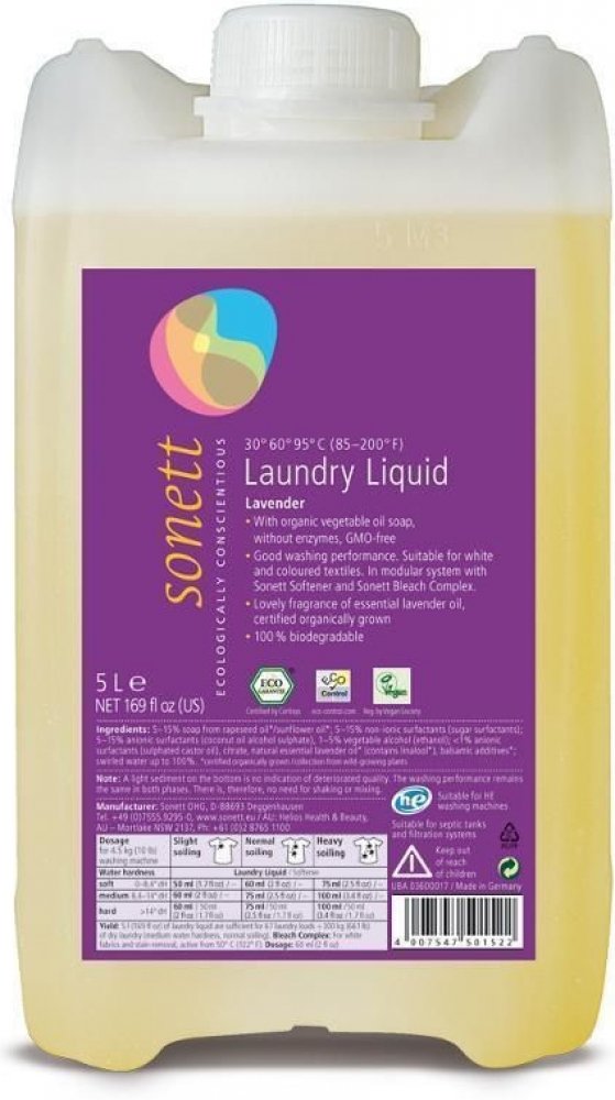 Poznámka: Účinky mýdlových pracích prostředků se mohou plně rozvinout pouze v měkké vodě, z toho důvodu je NUTNÉ přidat změkčovadlo ke každému praní. Při teplotách od 50°C lze na odolné skvrny přidat 60 ml bělidla SONETT.