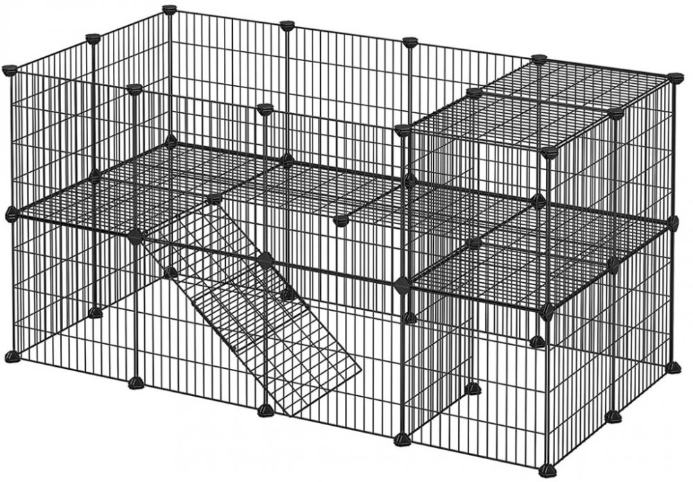 Dům na cestě: Všichni bychom si přáli, aby se naše zvířátko cítilo jako doma. Vytvořte si elegantní, personalizovaný domeček s preferovaným tvarem vašeho domácího mazlíčka díky černému dvoupatrovému výběhu pro zvířata.Připraveno během okamžiku: Vytvoření plotu DIY je jednoduché a zábavné! Stačí spojit 36 panelů drátěného pletiva pomocí 40 spojovacích prvků a vaši malí chlupatí mazlíčci si to mohou hned vyzkoušet; budou ho rádi zkoumat!Váš domácí mazlíček si zaslouží kvalitu: Nekupujte ohrádku, která by se mohla při sebemenším pohybu rozpadnout a vyděsit vašeho malého kamaráda; naše konektory jsou vyrobeny z odolného plastu ABS, aby byly panely stabilnější;Křečci a králíci: Všechna malá zvířata budou mít konečně vlastní místo pro bezpečné hraní. Vzdálenost mezi oky byla snížena na 2,5 cm, aby se nejmenším nezasekávaly nožičky a zároveň byla ohrádka vzdušná a pod vaším dohledem.Co získáte: 36 panelů z drátěného pletiva, 40 plastových spojů, 12 protiskluzových plstěných podložek, 100 svorek, 1 gumová palička a skvělý způsob, jak hýčkat své domácí mazlíčky!