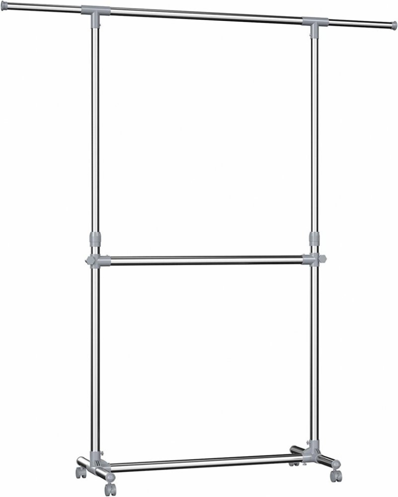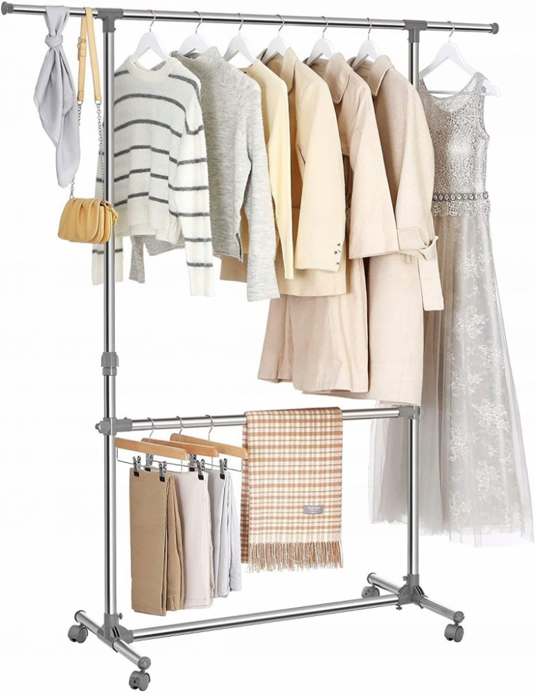 Praktický stojan, který je rozdělen na dvě části pojme ještě více věcí a sám více místa nepotřebuje. Skvěle se bude vyjímat v ložnici, šatně nebo kdekoliv jinde a pověsit zde můžete naprosto cokoliv. Stojan je obohacen o kolečka, takže je snadno přemístitelný. 2 kolečka jsou vybaveny brzdou, takže se nemusíte bát, že by stojan nedržel na svém místě.