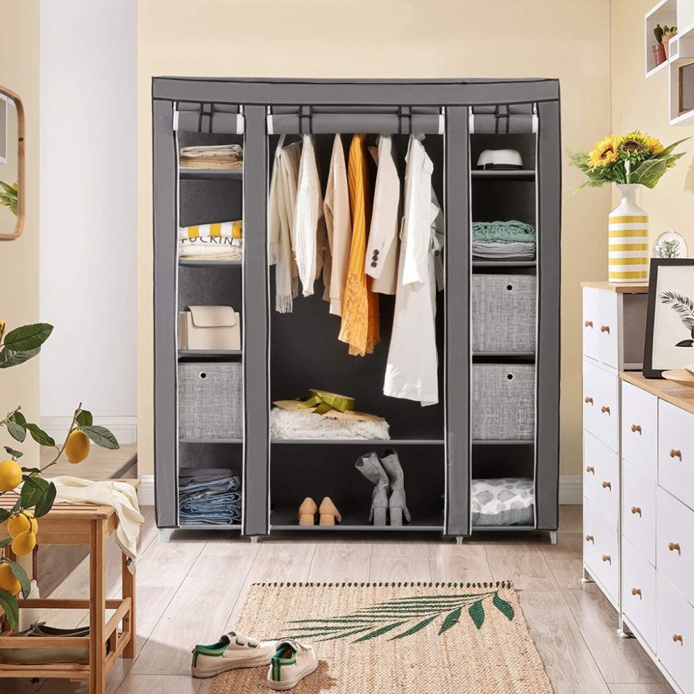 Dokonale plní svůj účelDIY design a úspora místa. Lehký a přitom robustní. Ideální úložný prostor pro chodby, schodiště, ložnice, dětské pokoje nebo dokonce sklepy, půdy a sklady. Díky věšáku na oděvy na něj můžete zavěsit oblečení, opasky a kravatyPraktický krytRolovací závěs na dveře se upevňuje pomocí suchých zipů. Zipy usnadňují otevírání a zavírání dveří. Chrání vaše oblečení před prachem a n...