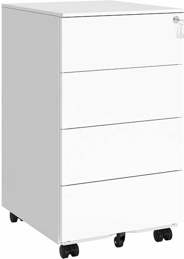Vše na jednom místě: Pokud máte na pracovním stole v pracovně nebo kanceláři neustále nepořádek, tento pojízdný podstavec se 4 zásuvkami vám pomůže udržet pořádek. Skříňka má také odnímatelný organizérPevnost a kapacita:Je vaše kancelář vaším druhým domovem? Ocelová konstrukce této skříně na dokumenty je dostatečně pevná, abyste do ní mohli uložit všechny dokumenty a kancelářské potřeby; každá zásuvka unese až 15 kgPraktické zásuvky: Zásuvky jsou vybaveny bez úchytek. Můžete je však otevírat z boku. Díky robustním pojezdům s plným výsuvem je můžete zcela vysunout. Všechny zásuvky lze také uzamknout zámkemJiž předmontované: Tato kancelářská skříň se dodává již smontovaná, takže nemusíte ztrácet čas složitou montáží. Stačí se rozhodnout, zda chcete připojit 5 koleček (2 s brzdou), nebo neCo získáte: Mobilní podstavec se 4 zásuvkami na kancelářské potřeby, 4 kolečky pro větší flexibilitu, jedním kolečkem navíc pro větší stabilitu a zámkem, který ochrání vaše soukromé dokumenty před zvědavýma rukamaAť už pracujete doma nebo v kanceláři, uklizený pracovní prostor má velký vliv na vaši koncentraci a produktivitu. S touto kartotékou se 4 zásuvkami od společnosti SONGMICS můžete udržovat své pracoviště uklizené a zároveň optimalizovat svůj pracovní čas.Robustní a praktickáDokumenty, psací potřeby, osobní věci - vše, co v práci potřebujete, má v této mobilní kartotéce své místo. Každá ze 4 velkých zásuvek pojme až 15 kg a plně výsuvné pojezdy zajišťují větší pohodlí při otevírání a zavírání zásuvek. Ocelová konstrukce je tak robustní, že tuto kartotéku můžete používat po mnoho let.Důležité detailyKvalitní zámek chrání vaše složky před zvědavými pohledy. Pokud rádi pracujete například v obývacím pokoji, stačí tuto pojízdnou kartotéku posunout na požadované místo. Věrný společník, který je vám vždy k dispozici!Podrobnosti o produktu: Vnitřní prostor pro uložení dokumentů, který je součástí skříně, je vybaven systémem pro ukládání dokumentů:- Barva: bílá Cloud/černá Inkoustová- Materiál: ocel- Rozměry: 45,1 x 39 x 69,3 cm (D x Š x V)- Hmotnost: 20 kg- Max. Nosnost každé zásuvky: 15 kgRozsah dodávky:- součástí dodávky je 1 x pojízdný podstavec se 4 zásuvkami- 1 x balení příslušenství- 1 x návod k použití