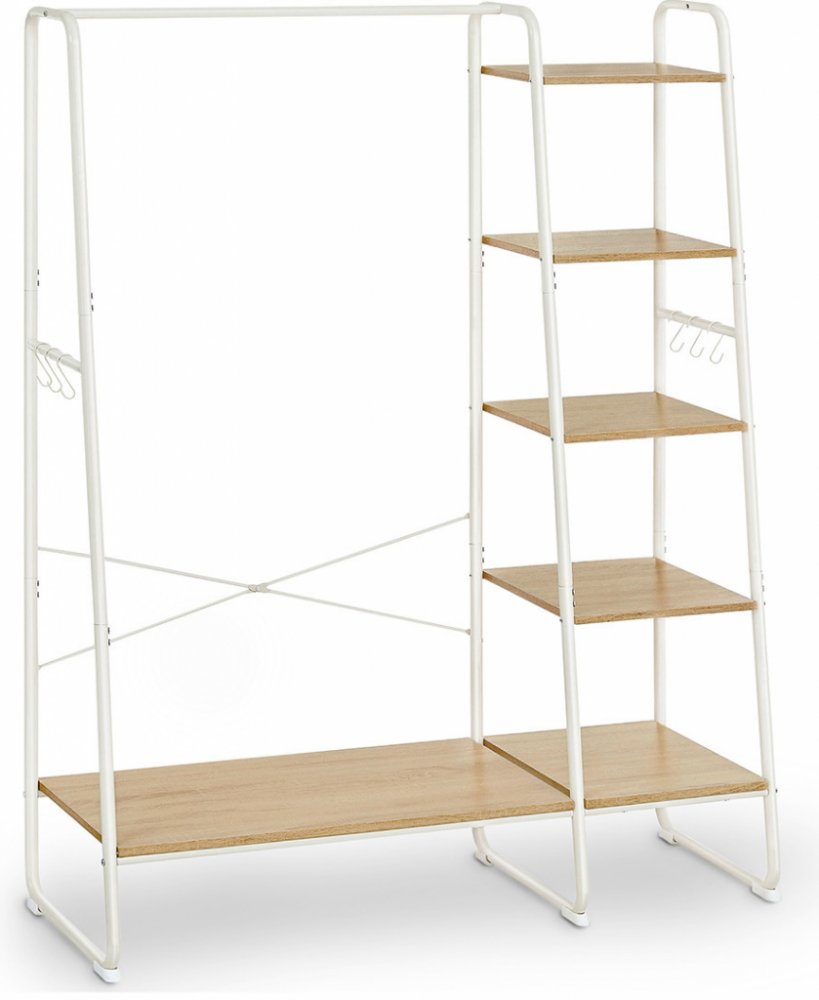 Věšák na oděvy, věšák na kabáty, 45 X 120 X 160 cm, věšák na oděvy s tyčí na oděvy, stojan na boty, otevřený v jednom věšáku na oblečení] Tyč na kabáty nebo košile, 6 polic na tašky, krabice nebo rostliny, boční lišty se 6 odnímatelnými háčky na klobouky nebo doplňky, další úložný prostor na boty ve spodní části [dostatek místa na ramínka a otevřená konstrukce] Tento velký věšák na oblečení s rozměry 45 x 120 x 160 cm nabízí dostatek prostoru pro zavěšení i dlouhých kabátů. Díky otevřené konstrukci máte oblečení vždy po ruce, takže se můžete rychle připravit na odchod [robustní a stabilní] Vysoce kvalitní dřevotřísková deska, pevné ocelové trubky - věšák na oblečení do předsíně je robustní, odolný a pružný (celkem do 220 kg ). Rám ve tvaru písmene A, x vzpěr v zadní části, speciálně tvarované nohy - pro vysokou stabilitu [univerzální] Tato otevřená skříň je ideální do ložnice, šatny nebo předsíně - podle vašich potřeb můžete na pravou nebo levou stranu věšáku na oblečení připevnit pětiúrovňovou polici Montáž - velmi snadná: díky přehledně označeným dílům a srozumitelnému ilustrovanému návodu (angličtina není zaručena) tento věšák na oblečení snadno sestavíte Podrobnosti o produktu:barva: bílý dub materiál: dřevotříska, ocel. Celkové rozměry: 45 x 120 x 160 cm (D X Š X V). Hmotnost: 16,6 kg. Maximální statická nosnost věšáku na oděvy: max. nosnost: 40 kg. Max. statická nosnost na jeden háček: max. nosnost věšáku na ramínka: 4 kg. Max. statická nosnost na úroveň (shora dolů): 21,3 kg, 24,9 kg, 27,2 kg, 29,9 kg, 75,3 kg. Max. celková statická nosnost: 220 kg Obsah balení: 1 x věšák na oděvy, 1 x balení příslušenství, 1 x návod k použití (čeština není zaručena) Vstupte do světa organizované elegance se stojanem na oblečení Greya z kolekce Vasagle Greya – vaším kouzelným koutkem pro styl a útulnost. Multifunkční design, který září originalitou. Tento šatník spojuje tyč na zavěšení, botník, 5 úložných polic a 6 bočních háčků ve tvaru písmene S v jediném pohlcujícím objemu. Vaše oblečení, boty, tašky, dekorace a rostliny získají svůj vlastní dokonalý kout. Nevídaný prostor pro vaše poklady. Se svými rozměry poskytuje tento stojan na oblečení dostatek otevřeného úložného prostoru pro vaše nejdražší věci. A co víc, vertikální prostor zaručuje bezproblémové zavěšení dlouhých kabátů, abyste byli připraveni na každý nový den. Stabilita jako základ elegance. Vyvinut z kvalitní dřevotřísky a odolného ocelového rámu, tento stojan unese až 220 kg váhy, připraven vám poskytnout pevnou oporu, rok za rokem. A s nosností závěsné tyče až 40 kg si můžete být jisti, že i ty nejtěžší kabáty budou v bezpečí. Flexibilita podle vašich snů. Pět úložných polic lze snadno umístit na levou nebo pravou stranu šatní tyče, přizpůsobitelnost na míru podle vašich potřeb. Použijte tento stojan v ložnici, předsíni, obývacím pokoji – kdekoliv, kde potřebujete spojit praktičnost s elegancí. Montáž bez starostí. I když nejste profesionální montér, s jasným návodem a očíslovanými díly můžete tento šatník sestavit bez námahy. Specifikace produktu: Industriální design Praktické řešení Kvalitní zpracování
