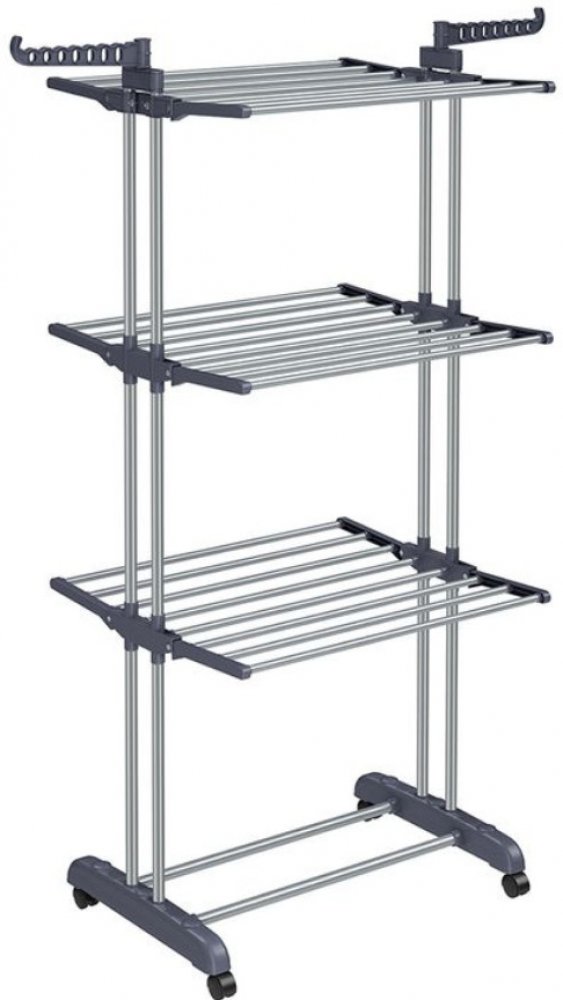 Elton je praktický a stabilní sušák na prádlo se 4 úrovněmi, sklopnými křídly a otočnými háčky, který nabízí dostatek místa pro sušení oblečení, ručníků, ložního prádla i obuvi. Díky kolečkům jej snadno přesunete na balkon, terasu nebo do prádelny a po použití jej jednoduše složíte, čímž ušetříte místo. Pevná ocelovo-plastová konstrukce zaručuje dlouhou životnost a stabilitu až do 35 kg nosnosti. Montáž zvládnete do 10 minut bez speciálního nářadí. Výhody produktu: 4 úrovně a otočné háčky – dostatek prostoru pro různé typy prádla Kolečka s brzdami – snadné přemístění a bezpečné zajištění Skládací konstrukce – úspora místa při uskladnění Pevný a odolný rám – nosnost až 35 kg Technické údaje: Barva: šedá Materiál: ocel, plast Rozměry v rozloženém stavu: 64 × 126 × 172 cm (hloubka × šířka × výška) Rozměry ve složeném stavu: 50 × 76 × 172 cm (h × š × v) Rozměry základny: 50 × 76 cm Rozměry horních 3 úrovní (rozložené): 64 × 73 cm Rozměry horních 3 úrovní (složené): 21 × 73 cm Hmotnost: 4,4 kg Max. statická nosnost: 35 kg Obsah balení: 1× sušák na prádlo Elton 1× ochrana proti převržení 1× montážní příslušenství