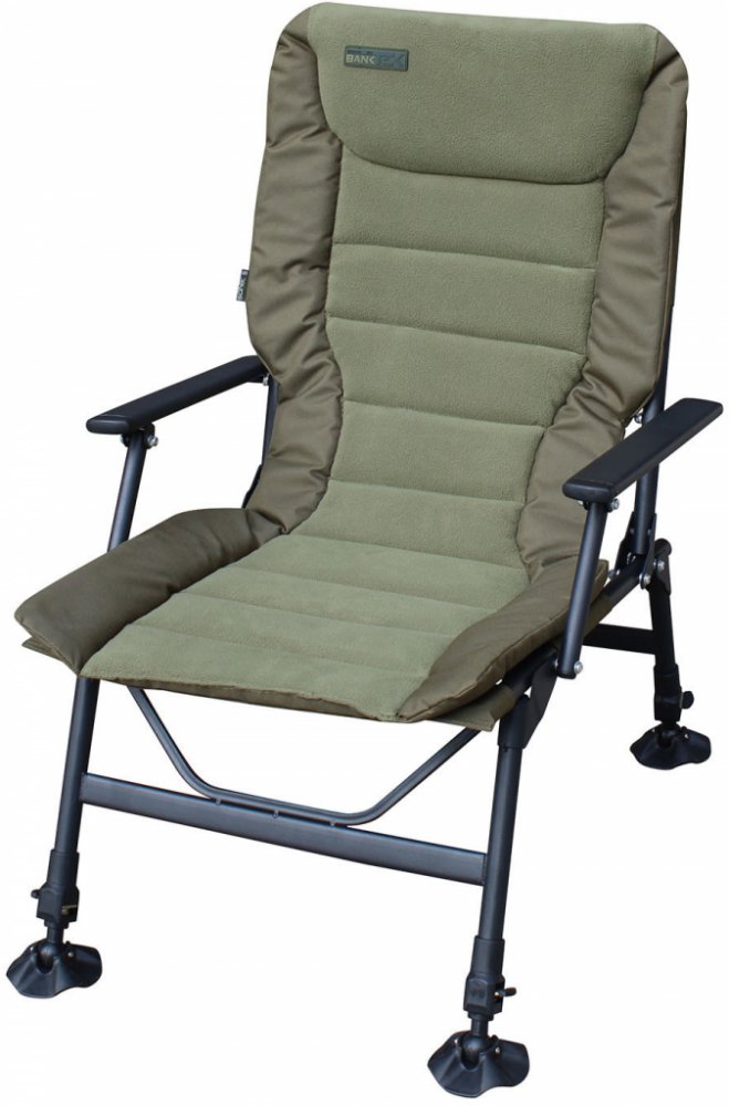 Kromě nastavitelného systému nohou s otočnými patkami proti zaboření do bláta má křeslo také uzamykací systém na všech čtyřech nohách. Pohodlné područky z něj dělají perfektní křeslo pro rybáře.