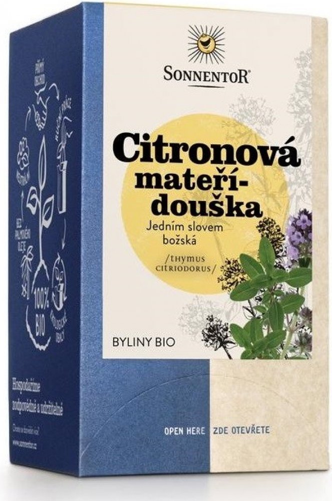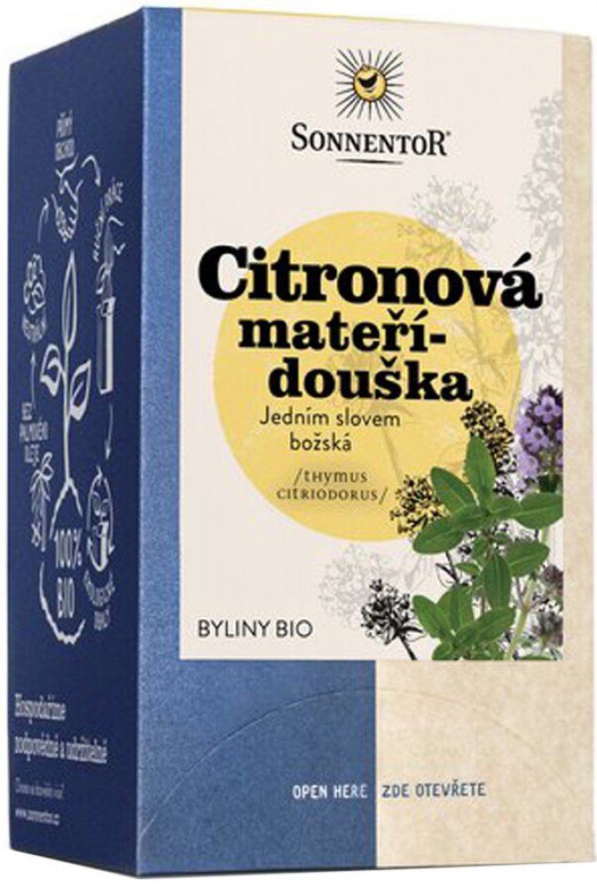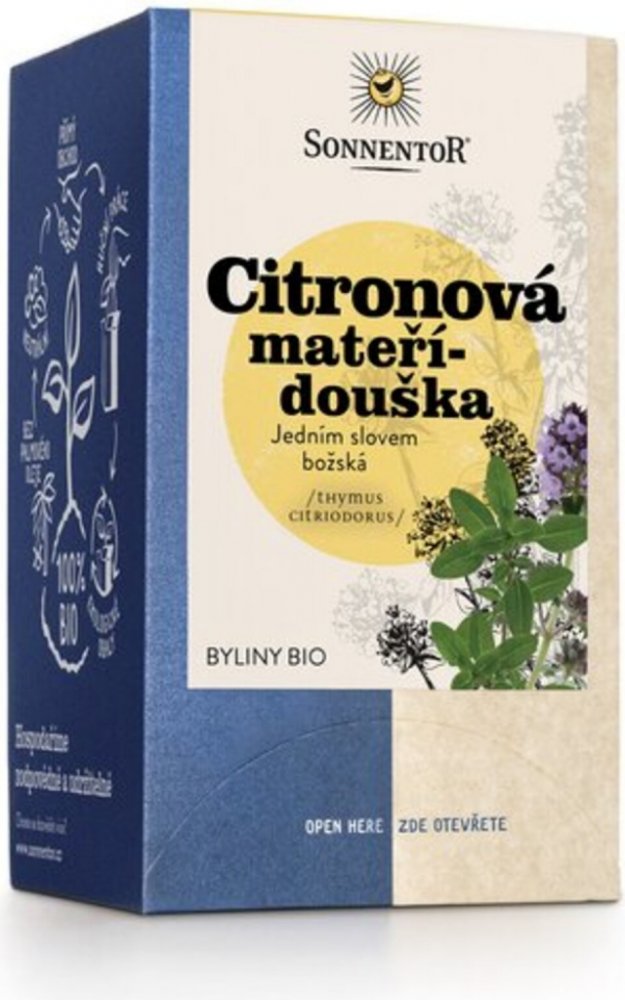 Citronová mateřídouška bio 18 g, porc. dvoukomorový od výrobce Sonnentor. Produkt v bio kvalitě. Pěstováno metodou ekologického zemědělství.