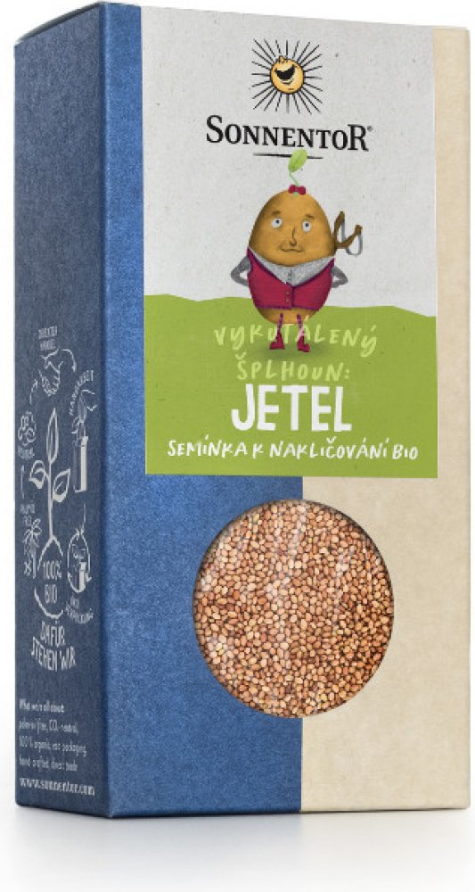 Balení semínek jetele v Bio kvalitě.Klíčky jetele mají jemně oříškovou chuť a hodí se do polévek nebo do různých salátů.Chtěli byste si sami vypěstovat vitamínovou bombu? Dejte naklíčit suchá semínka a po pár dnech budete mít zdravé klíčky v Bio kvalitě a bez pesticidů.Suchá zrna v sobě ukrývají spoustu minerálních látek, bílkovin, vitamínů, enzymů a stopových prvků, přičemž jejich naklíčením se počet těchto tělu prospěšných látek zmnohonásobí. Dodáte tělu například železo, hořčík, vitamin A, vitaminy skupiny B, bílkoviny, vitamin C a E a další.V naší nabídce můžete najít známá a běžná semínka jako je řeřicha, ředkvička nebo mungo ale také ty méně časté například pohanka cizrna, Vojtěška.Veškerá naše semínka jsou vhodná i na zasetí do záhonu. Můžete tak přes léto sklízet úrodu například i ve venkovních truhlících, sklenících nebo klasických záhonech. Postup U většiny microgreens platí obecná jednoduchá pravidla pro správné pěstování. Suchá semínka nechte namočit přes noc, poté namočená semínka rozprostřete na čistou misku tak, aby se navzájem nedotýkala. Každý den pak semínka 2x denně propláchněte čistou vodou a po cca 3-8 dnech budete moci sklízet první klíčky včetně kořínků. Některé druhy microgreens nepotřebují namáčet přes noc, některým trvá růst trochu déle, některé chtějí méně světla, nebo některé světvo vůbec nepotřebují. Doporučujeme se řídit náležitosti konkrétního druhu microgreens. Pro klíčení můžete využít naši klíčící misky pro jeden druh semínek či více druhů nad sebou.Klíčící semínka nemají rády sluníčko, proto je umístěte spíše do šera nebo stínu.(Sáčky se semínky si připravujeme sami, snažíme se mít vždy přesné množství. Přesto máme u 100 g balení přípustnou odchylku 3 g = 3% a u 250g balení přípustnou odchylku 7,5 g = 3%. Děkujeme za pochopení.)