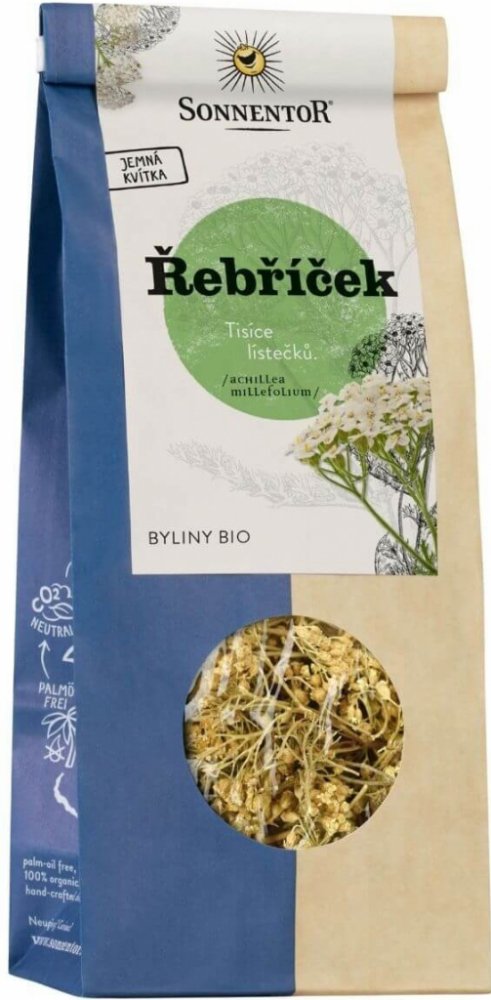 Sonnentor Čaj Řebříček sypaný BIO 50 g – Jemně nahořklý bylinný čaj z kvalitního bio řebříčku, který podporuje zažívání a celkovou pohodu. Ideální pro klidné večery i jako součást bylinkové kúry. 100% přírodní složení bez umělých přísad.