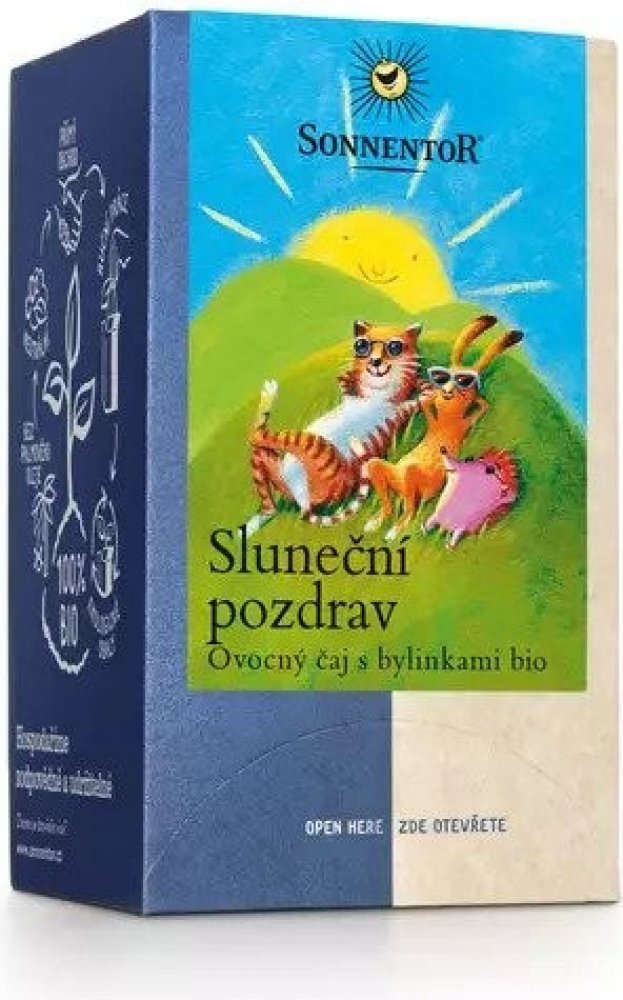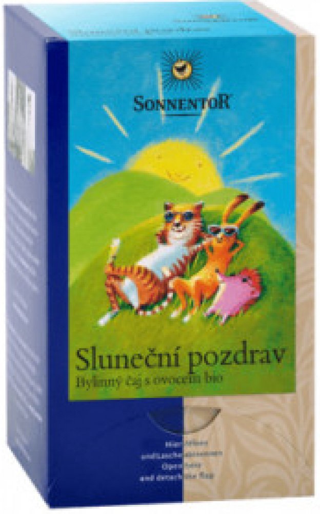 **Čaj Sluneční pozdrav v sobě nese tvář slunečních paprsků a je milým pozdravem všem blízkým. Tato jemná ovocno-bylinná směs má velmi harmonickou chuť, je osvěžující a velmi oblíbená u dětí i dospělých.**