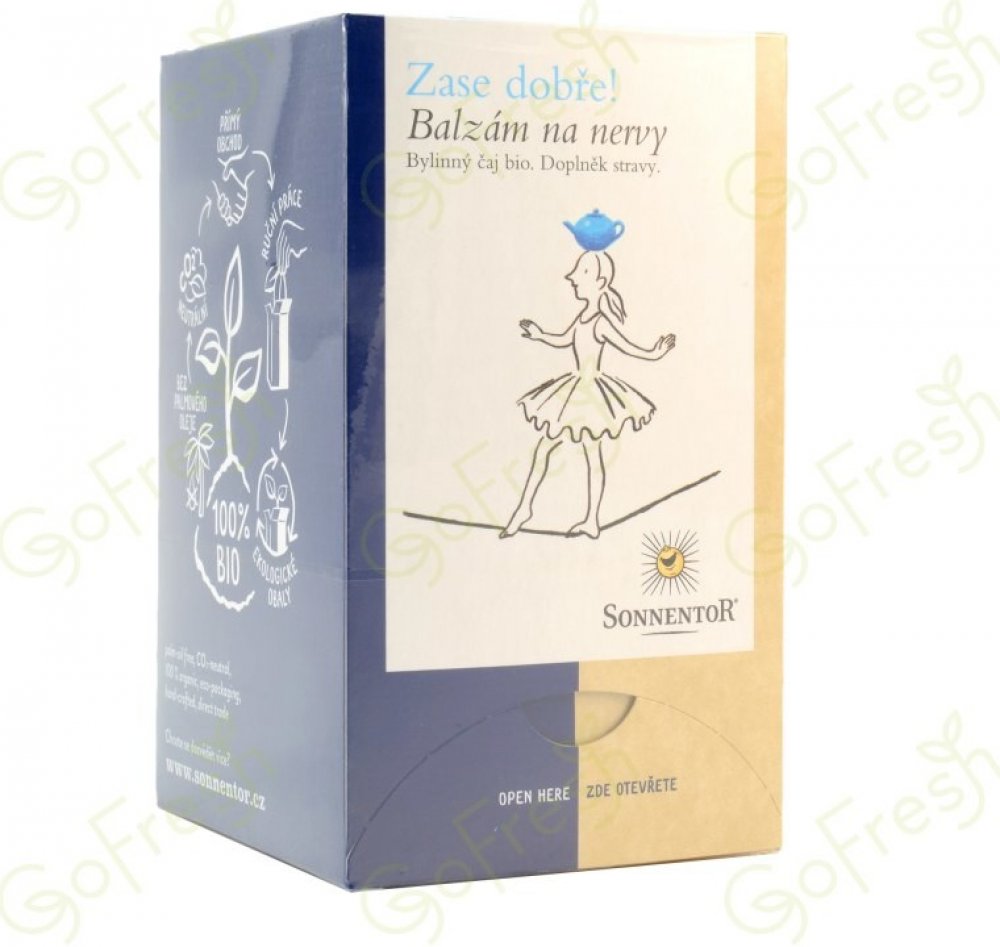 Bylinný čaj pojmenovaný Balzám na nervy. Obsahuje směs meduňky, máty, levandule a chmelu. Jednotlivé sáčky v přebalu. Vychutnejte si čaj v biokvalitě.
