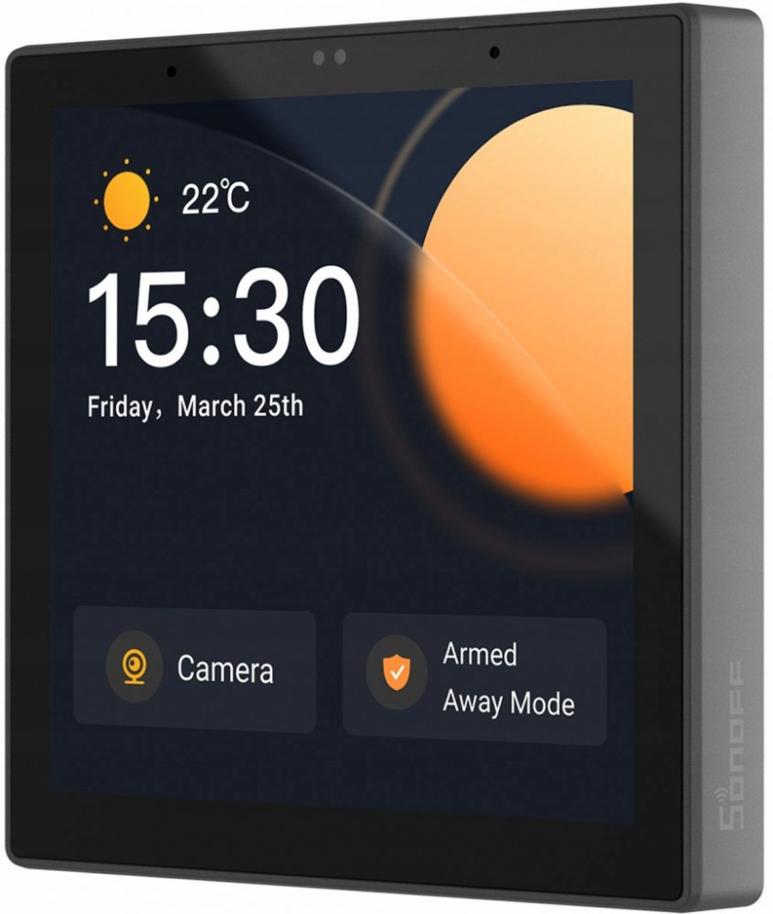 The switch is equipped with a display and works with Sonoff cameras (CAM Slim, GK-200MP-B), RTSP and ESP32. Thus, you will pair them with the device, gaining a view of your garage, dining room, or home entrance. What's more, it supports two-way audio, so you can conveniently communicate with a courier, for example. In addition, it has a built-in microphone and speaker - when connected to a smartphone or switch, it allows you to communicate with others.