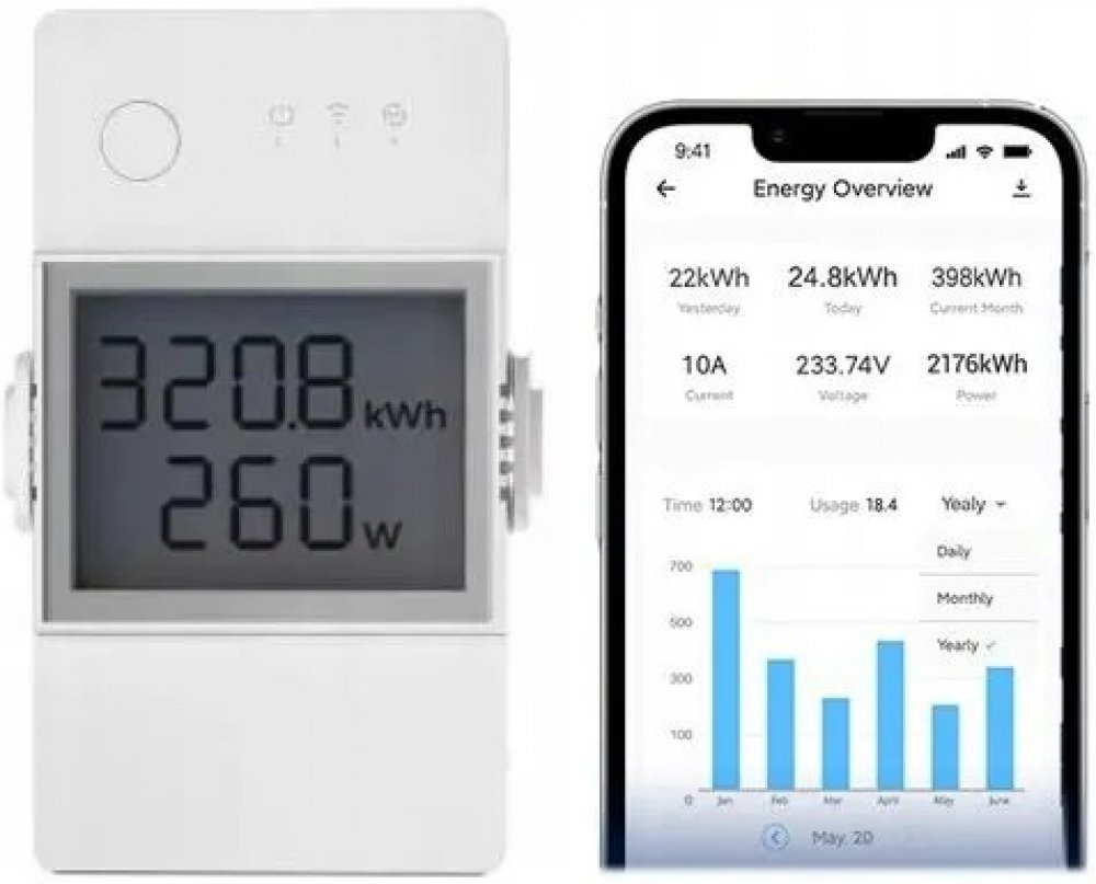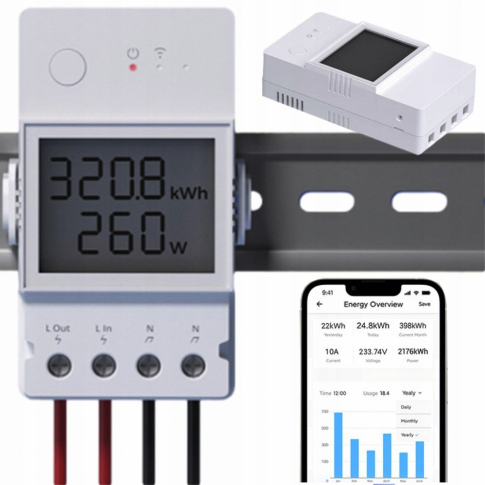 S velkým zabudovaným LCD displejem tento přístroj poskytuje monitorování spotřeby v reálném čase, přesné měření energie a dálkové ovládání přes intuitivní aplikaci eWeLink. Ideální pro řízení výkonných spotřebičů, pomáhá snižovat účty za elektřinu a zároveň chrání vaše zařízení pokročilou ochranou proti přetížení.