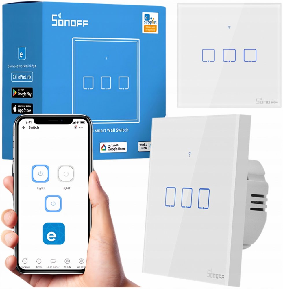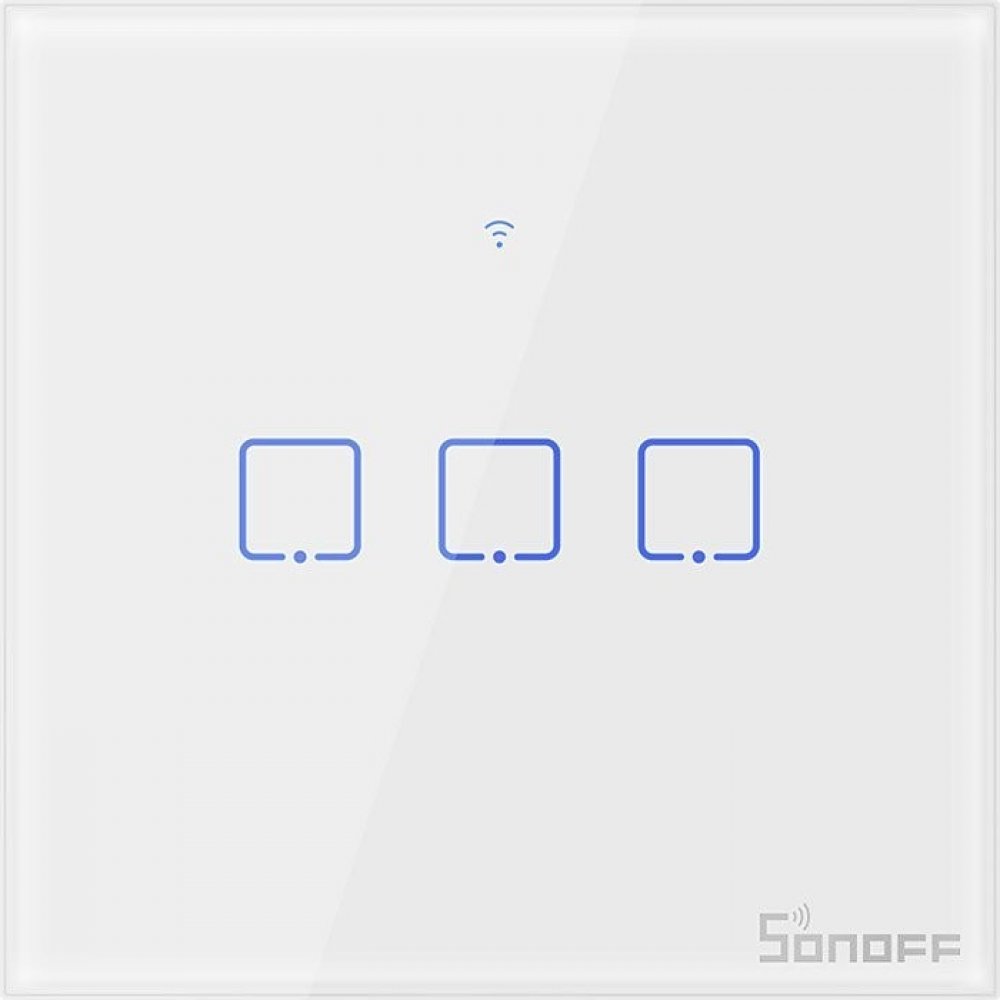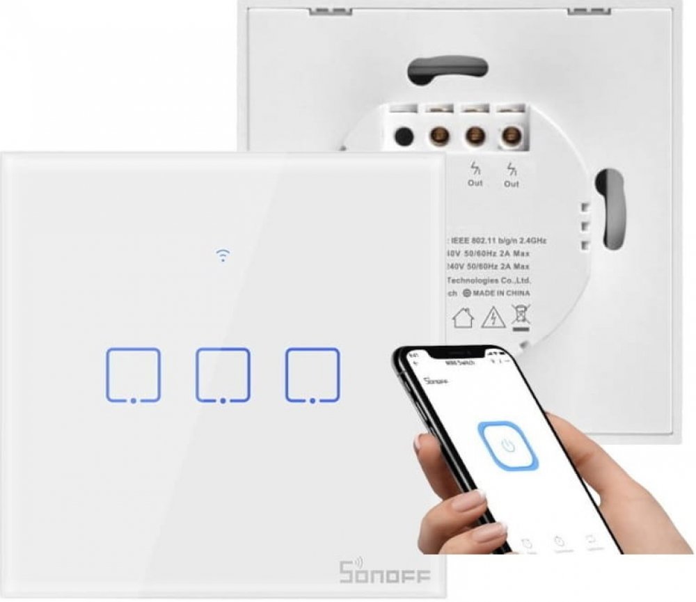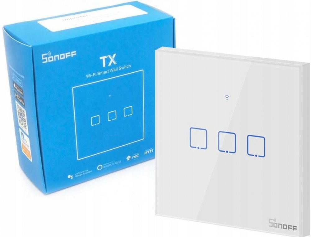 Tříkanálový dotykový wifi spínač světla Sonoff Touch, který můžete ovládat také pomocí telefonu, ať jste kdekoli na světě. Vypínač se vyznačuje elegantním designem - přední panel je vyroben z tvrzeného skla a nalezení vypínače ve tmě usnadňuje jemné modré podsvícení. Přepínač funguje se softwarem eWeLink, který je k dispozici pro zařízení iOS a Android. Aplikace umožňuje ovládat světlo a odečítat aktuální stav spínače, navíc je možné vytvářet časové plány, aby spínač zapínal a vypínal světla ve zvolený čas, a vytvářet scénáře a scény. Integrace spínačů se softwarem Amazon Alexa a Google Assistant umožňuje hlasové ovládání. Kompatibilita s technologií IFTTT zajišťuje spolupráci se systémy inteligentních budov třetích stran a ovládání osvětlení například v závislosti na čase východu slunce nebo přítomnosti osob v místnosti. Použití cloudu zajistilo, že přepínač lze ovládat odkudkoli na světě, ale i v případě, že přepínač nemá přístup k internetu nebo je připojení nekvalitní, je možné přepínač ovládat v interní síti LAN. Prodávaný přepínač je z nejnovější, výrazně vylepšené řady přepínačů Sonoff TX. Hlavní změnou je zlepšení citlivosti dotykových polí přepínače a změna designu přepínače. . . Specifikace:. Standard: EU. Napájecí napětí: 90~250V AC Maximální zatěžovací proud: 2A Maximální zatěžovací výkon: 400 W Barva: bílá. Wifi: 802.11 b/g/n Šifrování Wi-Fi: WPA-PSK/WPA2-PSK Materiál: tvrzené sklo + PC Počet kanálů: 3 Způsob montáže a připojení: K ovládání spínače jsou zapotřebí dvě linky N a L 230V. Pokud takovou instalaci nemáte, nabízíme také spínače, které fungují bez dalšího napájecího vedení. . . Vnější rozměry spínače:. Film ukazující instalaci aplikace eWeLink potřebné k provozu modulu: https://youtu.be/wF2xPci1aDo . Jak přidat přepínač do aplikace eWeLink . https://youtu.be/exS7whmkXp8