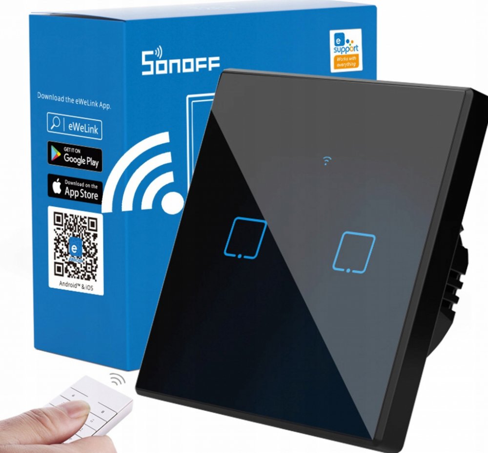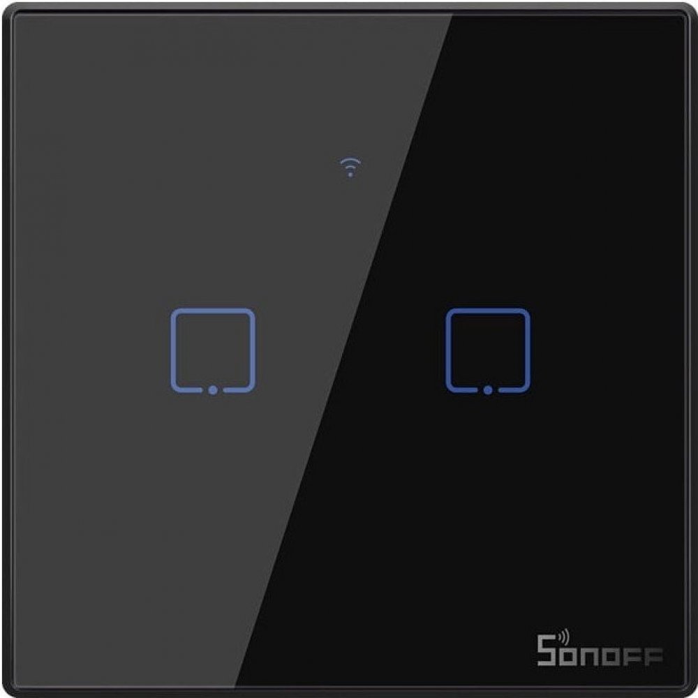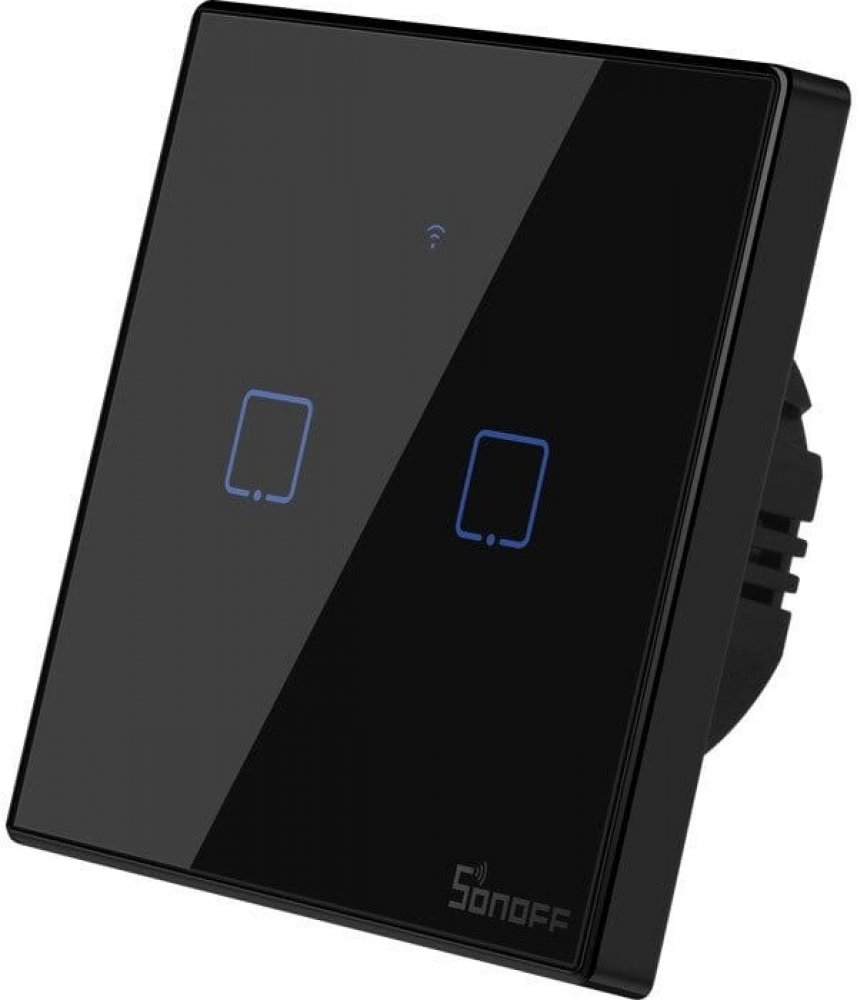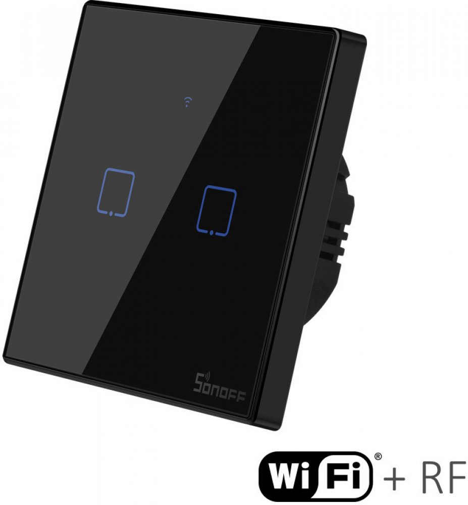 Sonoff typ T2EU2CTX ovládá dvě světla nebo dvojitý lustr. Vypínač Sonoff má skleněný panel, který pracuje s kapacitní dotykovou technologií. Dotyk je srovnatelný s dotykem smartphonu. Díky tomu je přepínač velmi snadno ovladatelný. LED dioda v dotykovém spínači se rozsvítí, abyste mohli orientovat ve tmě. LED osvětlení nabízí nejen luxusní vzhled, ale i funkční design.