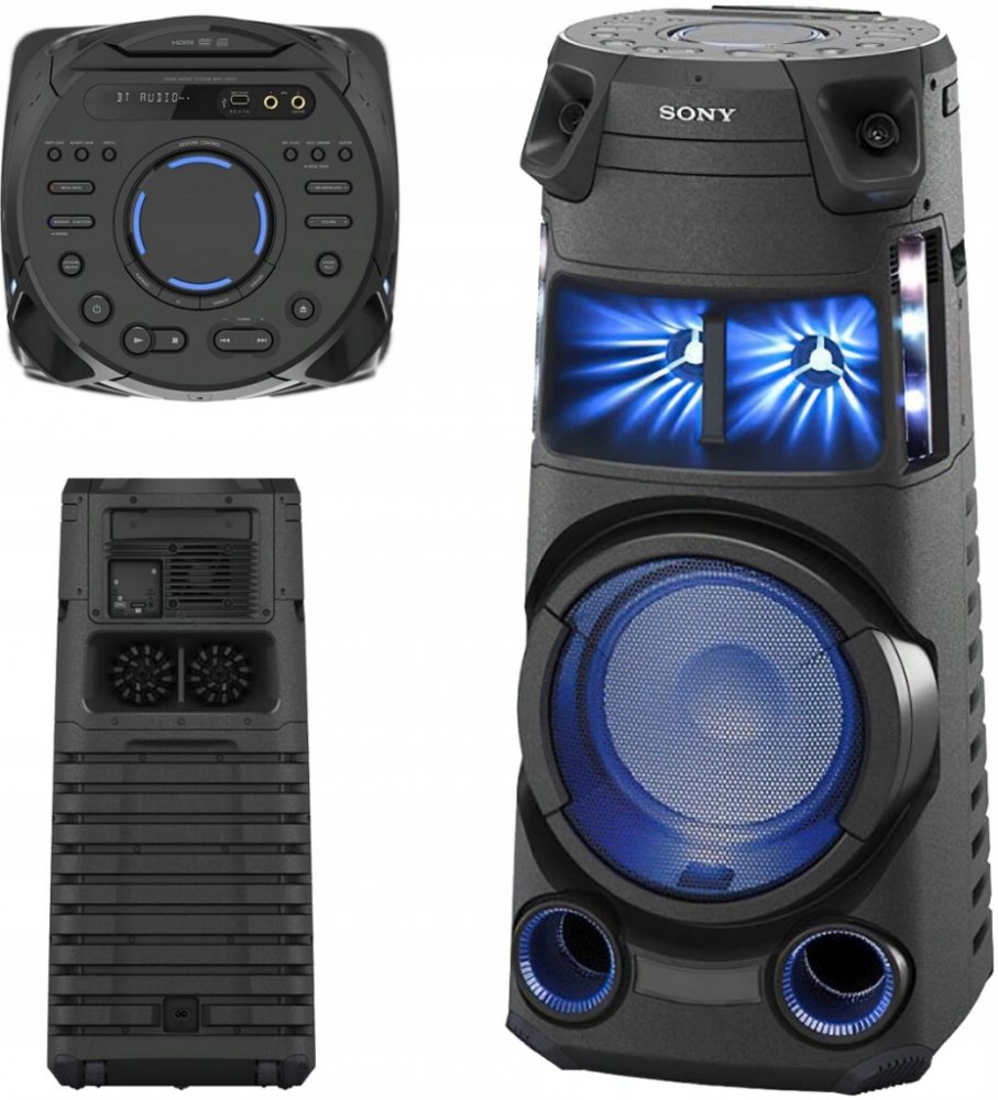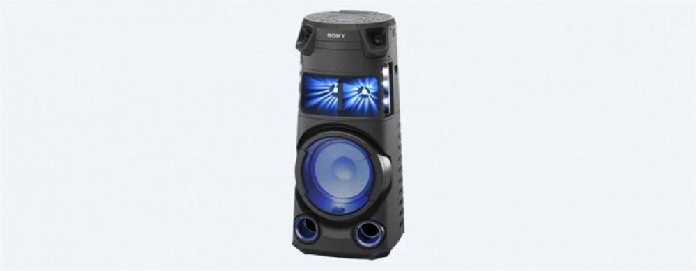 Party reproduktor, hudba přes Bluetooth, DAB+ rádio, JET BASS BOOSTER, Live sound, upscaling funkcí DSEE, Wireless Party Chain, App. Fiestable, odolnost vstup AUX, USB