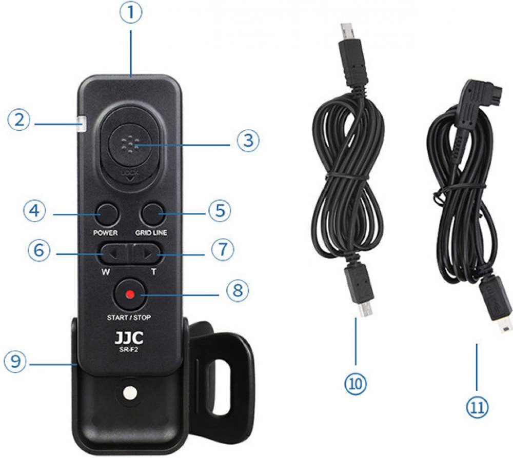 Dálkový ovladač JJC SR-F2 je speciálně navržen pro fotoaparáty Sony a videokamery. Pomocí dálkového ovladače můžete ovládat kameru nebo videokameru, která má terminál Sony Multi Terminal nebo REMOTE Terminal. Pracovní vzdálenost SR-F2 je až 1m / 3,28 '. Umožňuje nahrávat film / statické snímky bez vibrací.Dálkový ovladač má základní funkce záznamu (zapnutí / vypnutí napájení, nahrávání videa / statických snímků, přiblížení a zobrazení řádku mřížky). Díky funkci zamykání je JJC-SR-F2 ideální pro dlouhou expozici. Není třeba baterie, dálkový ovladač lehký pro skladování a přepravu. S vestavěným závitem 1/4 " a odnímatelnou sponou může být dálkový ovladač připojen k většině zařízení. JJC SR-F2 nahrazuje dálkový ovladač Sony RM-VPR1.