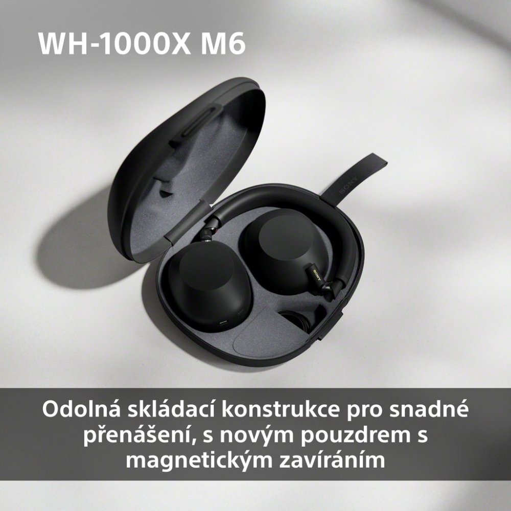 Sluchátka WH-1000XM6 mají inovativní skládací mechanismus s odolnými kovovými panty, který umožňuje sluchátka s potlačením hluku složit do kompaktní velikosti pro snadné skladování a přenášení.