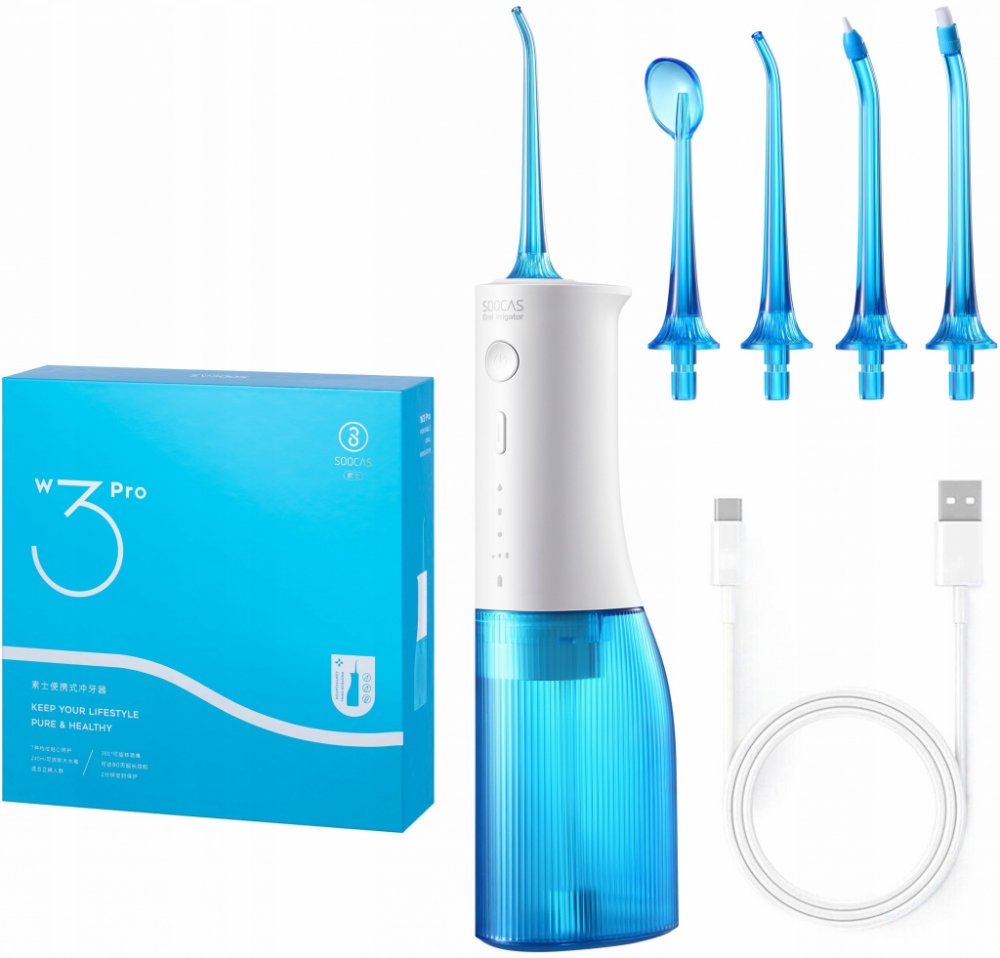 Irigátor Soocas W3 Pro vám umožní komplexní péči o zdraví vašich zubů. Při tradičním čištění zubů často vynecháte až 40 % ústní dutiny - běžný zubní kartáček se nedostane všude. Proto se vyplatí používat jiné metody čištění. S irigátorem Soocas můžete díky 3 režimům a až 4 vyměnitelným koncovkám pečovat o svůj chrup - a nejen o něj - komplexně. Přístroj se navíc snadno používá, je ergonomický a na jedno nabití vydrží až 80 dní.