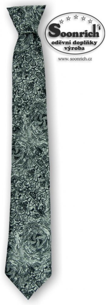 dětská kravata s gumičkou, materiál: 100% polyester, délka: 30 nebo 40 cm, šířka: 5 cm, obvod gumy: 20 - 30 cm, vzor: abstraktní, barva: černá, šedá, bílá , Dětská kravata je vyrobená z hladkého vzorovaného materiálu. Vzorovaná kravata se snadno ladí k jednobarevným košilím. Dětské kravaty šijeme ve dvou délkách. Kratší kravata je vhodná pro děti od 3 let a delší kravata pro děti školního věku. Kravata pro děti je ušitá se stahovací černou nebo bílou gumou a nemusí se vázat. Kravaty pro děti jsou vhodným doplňkem na zahájení nebo ukončení školního roku, narozeninové a slavnostní příležitosti. K dětské kravatě můžete také koupit výrobek podobného vzoru a materiálu, viz. náhled níže.