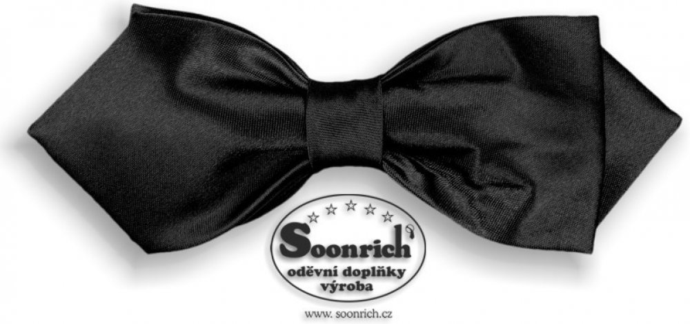 motýlek pánský dvojitý černý, materiál: 100% polyester, rozměr: 12 x 5 cm, tvar: dvojitý se špičkou, obvod gumy: 45 cm, vzor: jednobarevný, barva: černá , Pánský motýlek je vyrobený z lesklého saténového materiálu. Jednobarevný chlapecký motýlek má krásný lesklý povrch a dobře vyniká v košilích jednobarevných, s proužkem, kostičkou či jiných se tkaným vzorem. Motýlek je vhodný pro jakoukoliv příle...