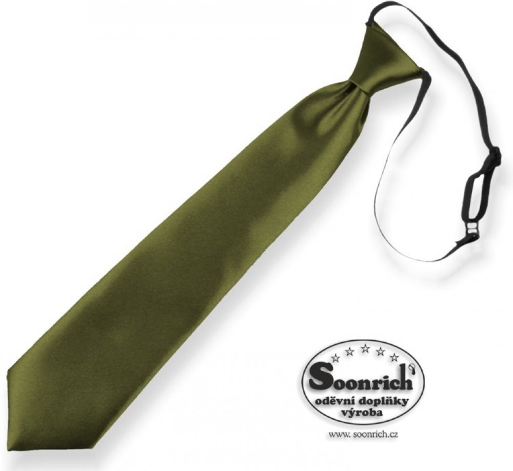kravata dětská khaki na gumičku, materiál: 100% polyester - satén, délka: 30 nebo 40 cm, šířka: 5 cm, obvod gumy: 20 - 30 cm, vzor: jednobarevný, barva: khaki , Dětská kravata je vyrobená z lesklého saténového materiálu. Jednobarevná kravata se snadno ladí ke košilím s proužkem, kostičkou nebo jiným vzorům. Dětské kravaty šijeme ve dvou délkách. Kratší kravata je vhodná pro děti od 3 let a delší k...